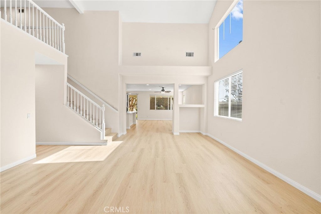 Beautifully remodeled 5 Bedroom 3 Bathroom two-story Wildomar home featuring a main level primary suite that lives like a single story with LOW taxes & LOW HOA. Perfectly tucked away in a quiet community just minutes from the 15 and 215 freeways, top-rated schools, and local shopping and dining, this home offers the ideal balance of convenience and tranquility. Inside, natural light pours through vaulted ceilings, highlighting the home’s brand-new laminate flooring and freshly painted interior. The open layout flows from the living area to the dining space and into the heart of the home — a modern kitchen designed for both gathering and creating. Featuring quartz countertops, new stainless-steel appliances, and a large center island, it’s a space that blends everyday functionality with style. A ground floor primary suite with two additional bedrooms on the main level offering flexibility for guests, family, or a home office. Upstairs, a large loft connects two more large bedrooms, offering the perfect setup for a playroom, second living area, or media space. From above, take in sweeping views of the Santa Rosa Plateau, a daily reminder of the beauty that surrounds this home. Step outside to a well-designed backyard complete with a covered patio overlooking the tree lined green belt with no rear neighbors for privacy and peaceful views. The space is beautifully finished yet offers plenty of opportunity to personalize and make it your own. With its in-law-friendly layout, thoughtful upgrades, and move-in-ready condition, this Wildomar gem delivers everything today’s homeowner is looking for: modern comfort, open space, and a location that truly feels like home.