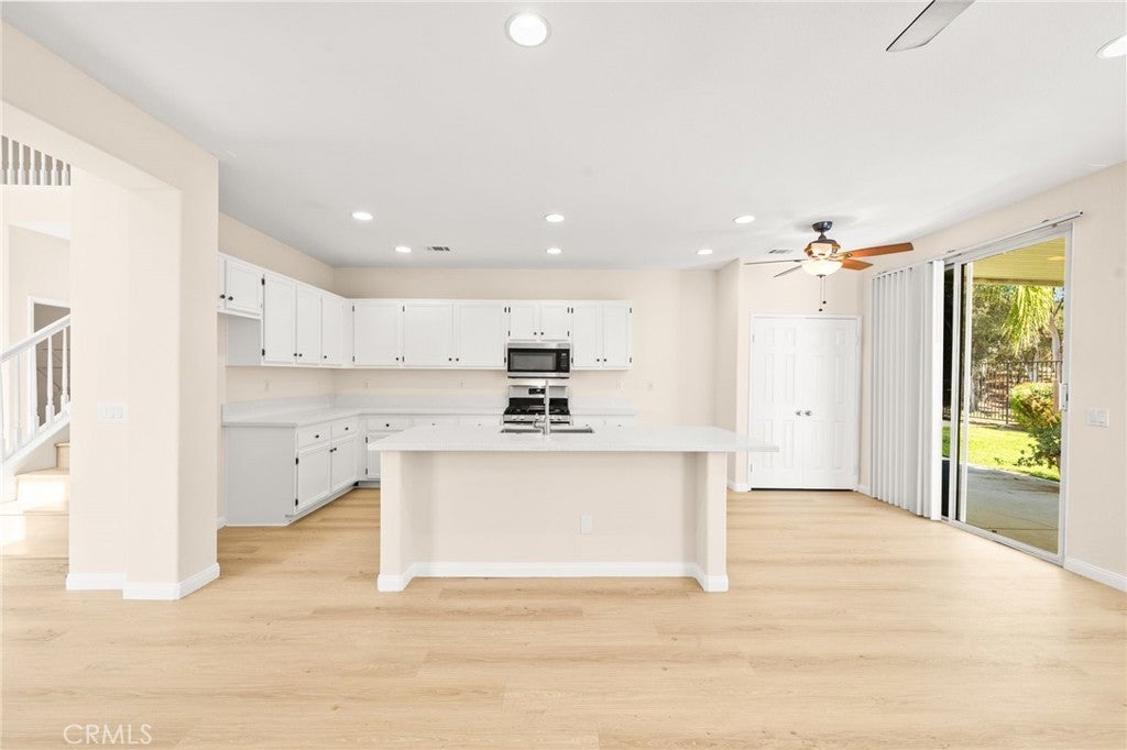 Beautifully remodeled 5 Bedroom 3 Bathroom two-story Wildomar home featuring a main level primary suite that lives like a single story with LOW taxes & LOW HOA. Perfectly tucked away in a quiet community just minutes from the 15 and 215 freeways, top-rated schools, and local shopping and dining, this home offers the ideal balance of convenience and tranquility. Inside, natural light pours through vaulted ceilings, highlighting the home’s brand-new laminate flooring and freshly painted interior. The open layout flows from the living area to the dining space and into the heart of the home — a modern kitchen designed for both gathering and creating. Featuring quartz countertops, new stainless-steel appliances, and a large center island, it’s a space that blends everyday functionality with style. A ground floor primary suite with two additional bedrooms on the main level offering flexibility for guests, family, or a home office. Upstairs, a large loft connects two more large bedrooms, offering the perfect setup for a playroom, second living area, or media space. From above, take in sweeping views of the Santa Rosa Plateau, a daily reminder of the beauty that surrounds this home. Step outside to a well-designed backyard complete with a covered patio overlooking the tree lined green belt with no rear neighbors for privacy and peaceful views. The space is beautifully finished yet offers plenty of opportunity to personalize and make it your own. With its in-law-friendly layout, thoughtful upgrades, and move-in-ready condition, this Wildomar gem delivers everything today’s homeowner is looking for: modern comfort, open space, and a location that truly feels like home.
