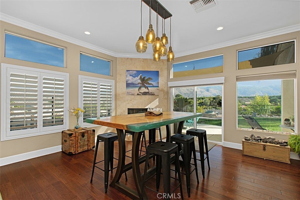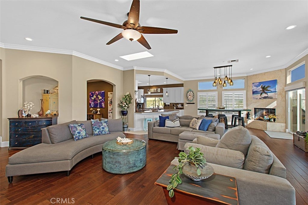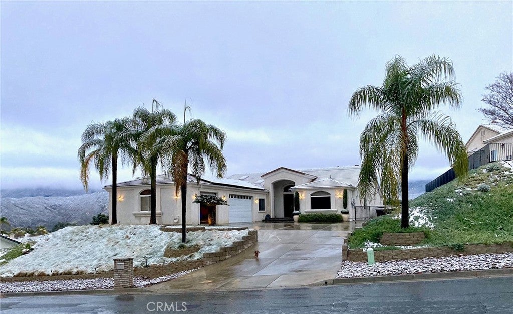 Stunning Custom Home with Panoramic Mountain Views! Enjoy breathtaking views of the San Jacinto Mountains from this beautifully upgraded 2,881 sq. ft. custom home located in one of East Hemet’s most exclusive neighborhoods. This home features an open floor plan filled with natural light from skylights and expansive windows highlighting the spacious great room and elegant finishes throughout. The gourmet kitchen offers granite slab countertops and backsplash, a large cooking island, induction cooktop, dual ovens, built-in KitchenAid stainless steel refrigerator, and a trash compactor. An oversized breakfast bar that seats six opens to the great room, making it ideal for entertaining. The luxurious master retreat includes a two-way fireplace, travertine finishes, jetted tub, large shower with dual shower heads, makeup vanity, and a cedar-lined walk-in closet. Two guest bedrooms share a Jack-and-Jill bathroom. Beautiful crown molding, upgraded flooring, and refined details are found throughout, as well as a whole house fan and a hot water recirculating system. Outside, you’ll find a huge landscaped backyard perfect for gatherings and relaxation, with room to take in the stunning views. Additional features include RV access with fulls hookups, a large 3+ car garage with epoxy flooring, workshop, and storage area. PLUS 20 SOLAR PANEL - paid off. Don’t miss this incredible opportunity to own a fully upgraded, move-in ready home that combines elegance, comfort, and spectacular views!