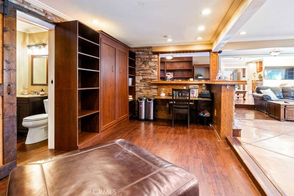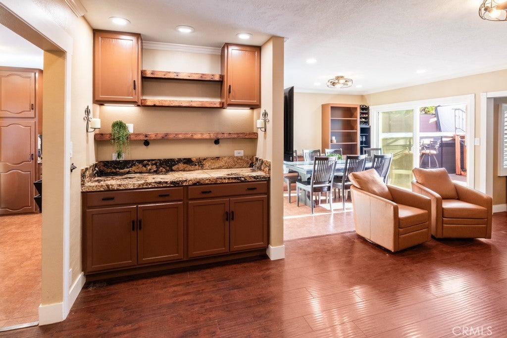 - Interior FeaturesBreakfast Bar, Block Walls, Ceiling Fan(s), Eat-in Kitchen, Granite Counters, Recessed Lighting, Storage, Bar, Breakfast Area, Built-in Features, Chair Rail, Crown Molding, Dry Bar, Open Floorplan, Paneling/Wainscoting, Pantry, Partially Furnished, Pull Down Attic Stairs, Separate/Formal Dining Room, Sunken Living Room, Wired for Sound
