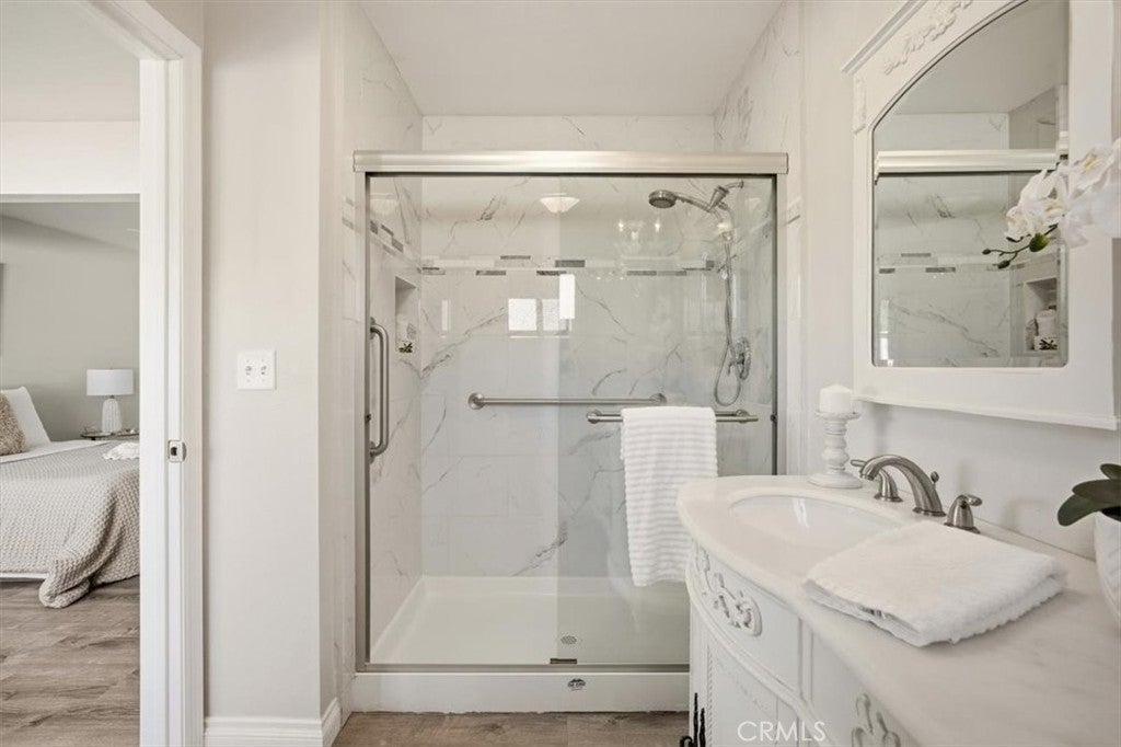 Fully upgraded 55+ home with modern finishes and thoughtful touches throughout! Enjoy a stunning kitchen with custom cabinets, under-cabinet lighting, soft-close features, built-in trash bins, stainless steel appliances, quartz countertops & island, and an incredibly spacious walk-in pantry. Two upgraded walk-in showers, luxury vinyl flooring, new interior doors, updated recessed lighting, and an interior laundry room with a sink. Relax in the large living room, the oversized primary suite with a sitting area, or enjoy the backyard, featuring a riverbed, low-maintenance landscaping in front and backyard, fruit trees, succulents, a backyard patio with newer tile, and three sides of vinyl fencing. Recent updates include a 2021 furnace, a 2025 garage door, and newer windows with updated window covers. No homes behind, low annual taxes, and move-in ready—this home combines privacy, upgrades, and effortless 55+ living!