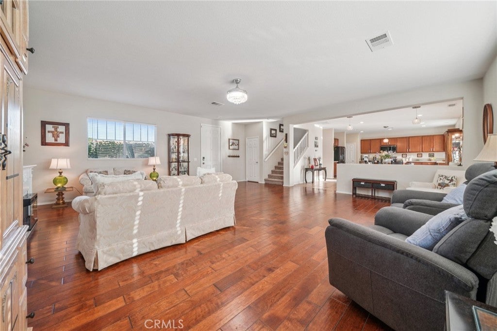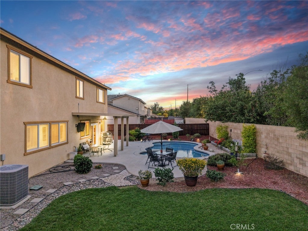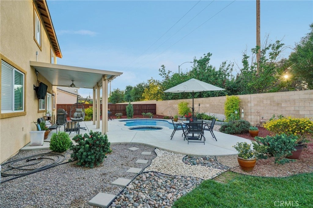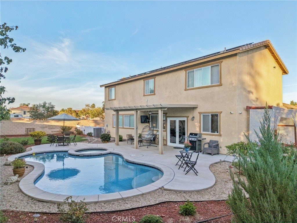 Stunning Menifee Pool & Spa Home with Solar • Loft • RV Potential! Neighbors Only On One Side! Welcome to 33263 Gypsum St — where style, comfort, and resort living come together! This gorgeous home offers everything you’ve been dreaming of — a sparkling pool and spa, energy-efficient solar, and a modern open layout that's perfect for entertaining and everyday living. Enter inside to a bright, spacious family room with beautiful hardwood floors and designer lighting. The open kitchen is the heart of the home, featuring stainless steel appliances, a large center island, and plenty of counter space for cooking, dining, and gatherings. French doors open to your private backyard paradise — complete with a newly built pool and spa, perfect for relaxing on sunny afternoons or hosting summer BBQs. The property currently only has neighbors on one side, with a vacant lot on the other, offering added privacy and open space. The large, flat backyard offers possible RV access (check with HOA) and even a private dog-run area for your furry friends! Upstairs, enjoy a spacious loft (perfect for a game room or home office) and three large bedrooms, including a beautiful primary suite with its own private bath. The upstairs has newer carpet and paint, giving the home a fresh, move-in-ready feel. Additional highlights include a 15-panel solar system with a low-interest loan to be assumed by the buyer — keeping your energy bills low and predictable all year long. Solar loan is $130 per month. Buyer must qualify for the solar loan. Located in a highly desirable Menifee neighborhood, you’re just minutes from top-rated schools, shopping, restaurants, and freeway access to both the 215 and 15.