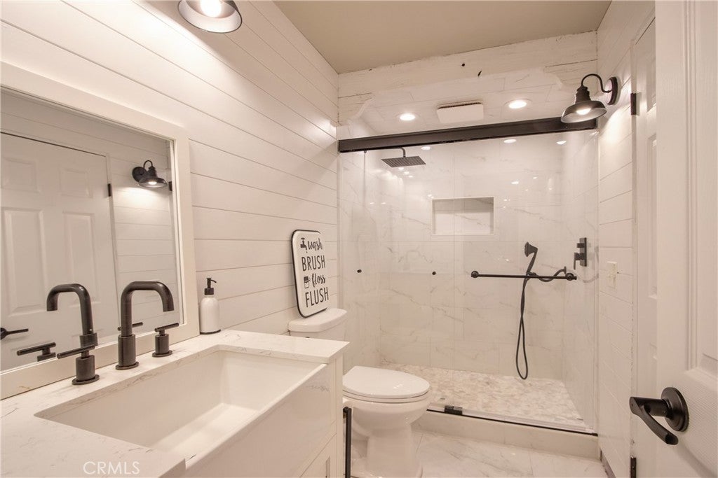 Back on the market, buyer couldn't perform. Tucked away on over two acres, this beautifully updated Menifee property blends the peaceful feel of country living with the convenience of being only minutes from shopping, dining, and freeway access. This spacious 5-bedroom, 3-bath home offers approximately 2,800 square feet of living space with thoughtful updates throughout. All three bathrooms are modernized, and one of the rooms has been transformed into a custom indoor game room and bar, perfect for entertaining. The open-concept kitchen features stylish finishes and connects seamlessly to the dining and living areas for effortless flow and family comfort. Outdoors, discover your own tropical resort-style retreat complete with a resort pool featuring a custom grotto waterfall with a three-person bench built into natural rock, in-pool barstools, a sunken bar, and both solar and heat-pump heating systems for year-round enjoyment. Just steps away, a detached shed offers endless possibilities as a pool house, entertainer’s lounge, or workshop. For BMX and Motocross enthusiasts, the property includes a fully built private bike park with jumps, berms, and open terrain—perfect for training, recreation, and hosting weekend rides or if you’re an equestrian at heart, the area can easily be transformed into a horse lovers dream with space for stables, riding trails, or a small arena. Additionally, the property includes two shipping containers (a 40-foot and 25-foot) thoughtfully placed to provide ample secure storage for tools, equipment, or outdoor gear. The 2.26-acre lot is fully enclosed with two custom-built privacy gates and highlighted by a majestic 1,000-year-old oak tree. Its mix of open and natural terrain provides endless possibilities, perfect for gardens, animals, or future additions, while offering plenty of space for outdoor living, entertaining, and recreation amidst mature landscaping. The garage has been thoughtfully converted into a full home gym, which can easily remain for fitness enthusiasts. Whether you envision a guest house, workshop, or expanded outdoor retreat, the property’s layout provides the flexibility to bring those ideas to life. Serviced by its own well and septic system, it offers both independence and modern convenience. This property offers the best of both worlds: the tranquility of a rural setting paired with the convenience of city living. The options are truly endless.