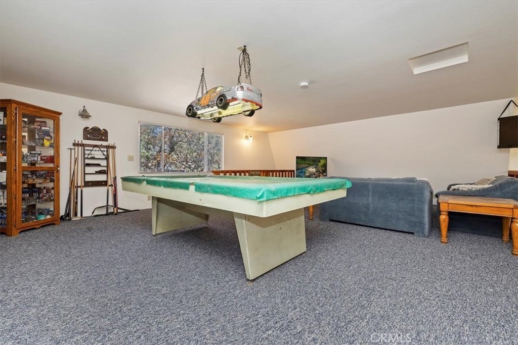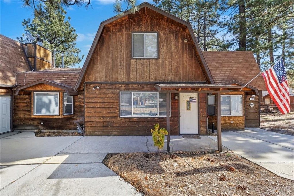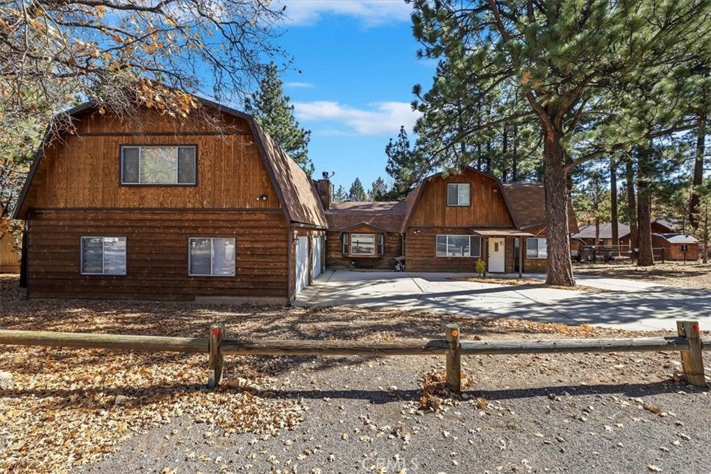 Welcome to 627 Sunset Ln — A True Mountain Retreat with the ULTIMATE Garage! Tucked away in the peaceful Sugarloaf community, this charming cabin blends cozy mountain character with practical upgrades and plenty of space for every hobby. The star of the show is the expansive oversized garage, complete with a full workshop area and an upstairs loft/game room/man cave—the perfect getaway spot for relaxing or entertaining after a day on the slopes. Step inside the inviting family room featuring vaulted ceilings with exposed beams and a classic brick fireplace, setting the tone for those crisp mountain evenings. The kitchen boasts real wood cabinetry, tile countertops, and warm rustic finishes that complement the cabin’s character. With two bedrooms upstairs and one conveniently located downstairs, there’s room for family and guests alike. The primary suite is truly a retreat, offering a private sitting area or TV room with its own fireplace, ideal for cozy nights in. A mudroom connects the home to the garage, providing the perfect transition space for snowy days or mountain adventures. Outside, a large backyard deck is ready for BBQs, gatherings, or peaceful mornings surrounded by tall pines. Located just minutes from Big Bear Lake, Bear Mountain Resort, and local hiking trails, this cabin offers both tranquility and convenience—whether you're seeking a full-time home, weekend getaway, or investment property.