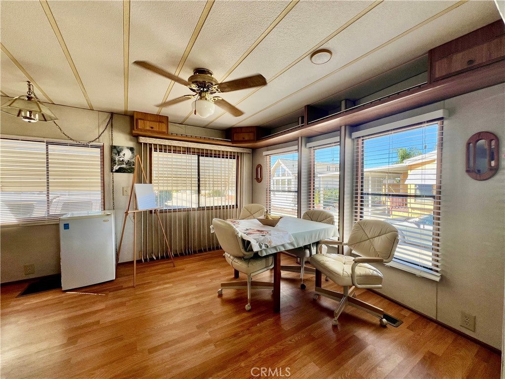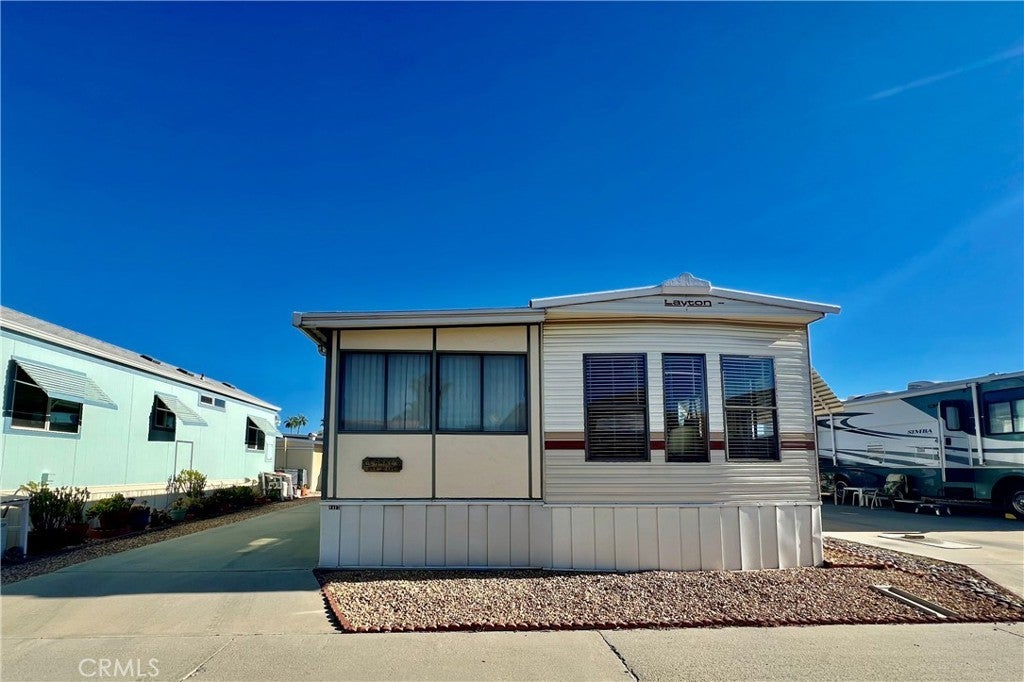 OWN THE LAND! Located in Heritage Ranch highly desirable gated 55+ senior community. Enter the Laytin 1986 home into the living room and delight in its beautiful bright open floor plan & laminate wood flooring throughout. Kitchen open to the dining room with full size refrigerator, free standing electric stove & lots of cabinetry. Bathroom has shower tub combo & vanity area. The Large bedroom has its own entrance/exit. Enjoy a morning or afternoon beverage from your covered porch with stunning views of the mountains. Concrete driveway is big enough for 2 cars along with an improved spacious storage shed WASHER & DRYER INCLUDED. This is resort living at its best, The spacious home offers peace and tranquility and the opportunity to have great gatherings with family and friends. Don’t miss out the opportunity to own this beauty! This property is located near restaurants, grocery shopping, clinics and college. WATER, TRASH, BASIC CABLE TV and INTERNET INCLUDED in HOA monthly fee of approx. $218.00 & LOW TAXES. Community features included POOL, Jacuzzi, walking trails, billiards, shuffleboard, clubhouse, laundry facilities and MORE!! MINUTES From SOBOBA CASINO, DIAMOND VALLEY LAKE, and the 10 FWY, A fantastic opportunity that will not be available for long. Call today for your private appointment to view this amazing property.
