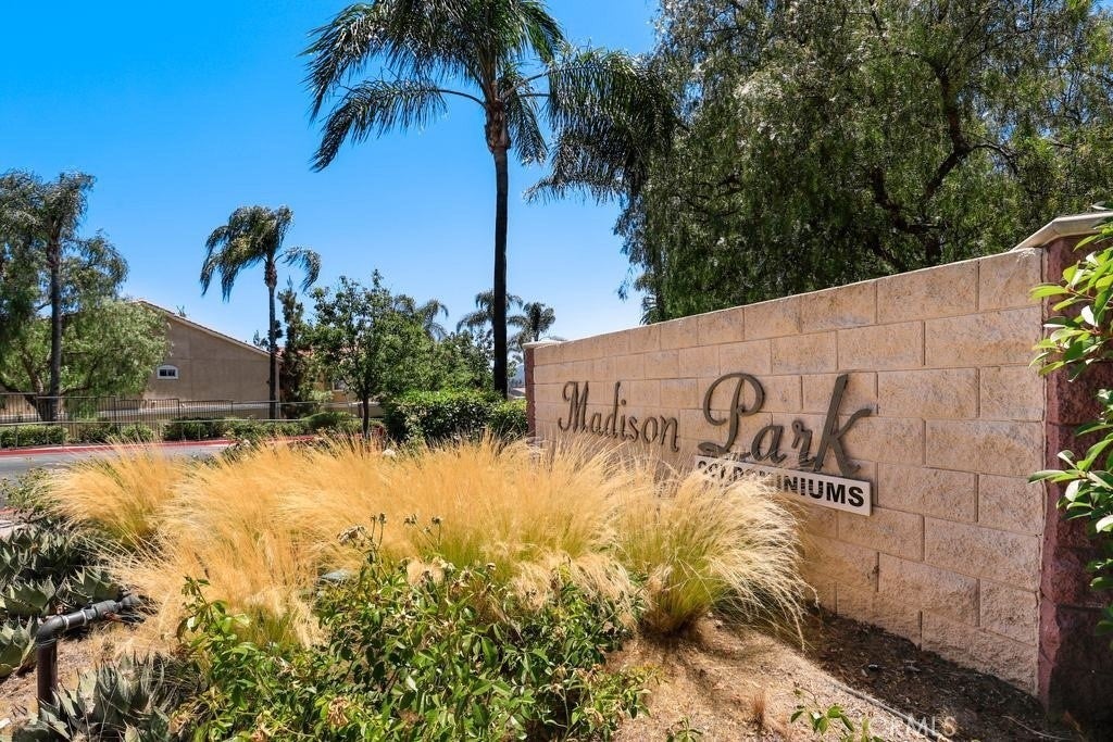 Nestled in the exclusive gated community of Madison Park Villas, this move-in-ready second-floor condo offers comfort, style, and convenience. Featuring 1 bedroom, 1 bathroom, and a brand new HVAC and water heater, this home is ideal for easy living. Inside, you'll be welcomed by beautiful laminate wood flooring throughout, a cozy living room with a fireplace, and a sliding glass door that opens to the balcony, offering peek-a-boo mountain views. The well-equipped kitchen boasts: A breakfast nook and dining area, modern appliances, including a microwave, stove, and dishwasher, plenty of cabinet space, and a nearby laundry room for added convenience. Adjacent to the dining area, you’ll find a versatile bonus room that can be used as pantry storage or an extra closet. The primary bedroom includes a walk-in closet and a ceiling fan for optimal comfort. Additionally, the unit comes with a covered carport parking space and an open car space. Madison Park Villas offers resort style amenities, including: A swimming pool and spa, clubhouse, and gym/exercise room. Conveniently located near shopping centers and major freeways, this condo is a perfect blend of tranquility and accessibility.