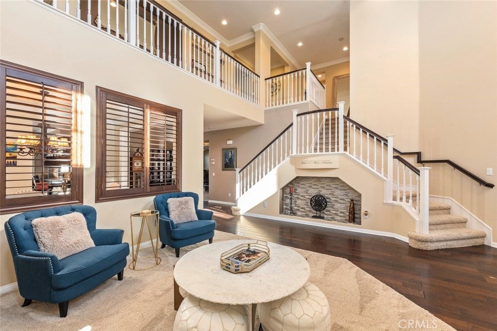 • Interior FeaturesBalcony, Breakfast Area, Crown Molding, Cathedral Ceiling(s), Separate/Formal Dining Room, Eat-in Kitchen, Granite Counters, Multiple Staircases, Pantry, Recessed Lighting, Wired for Sound, Bedroom on Main Level, Loft, Primary Suite, Walk-In Closet(s)