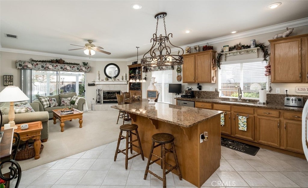 Stunning Turnkey Ranch Home in Prime Murrieta Location! Welcome to this impeccably maintained, single-story ranch-style home, a true gem located in a quiet, family-friendly neighborhood in Murrieta, CA. This turnkey property offers 4 bedrooms, 2 bathrooms, and a bright, open floor plan featuring numerous high-end upgrades. As you step inside, you will immediately be struck by the beauty and exceptional condition of this home. This spacious layout features a desirable open floor plan with separate living and dining rooms, providing ample space for entertaining and everyday life. Custom touches abound, including crown molding and upgraded baseboards throughout, adding a touch of sophistication. The kitchen is a chef's delight, boasting an island, stunning granite countertops, custom cabinetry, and a walk-in pantry. The spacious en suite primary bedroom is a peaceful retreat, featuring dual sinks and a huge walk-in closet. The well-landscaped backyard is an ideal spot for relaxation, offering a lovely patio perfect for enjoying your morning coffee or hosting weekend barbecues. Located in a peaceful, established community, you'll also enjoy an unbeatable location with proximity to Murrieta's award-winning schools, and all essential shopping and dining amenities. This home is move-in ready; everything has been meticulously cared for—just bring your belongings! Hurry! A property of this caliber, offering single-story living with such extensive care and upgrades, is a rare find and won't last long!