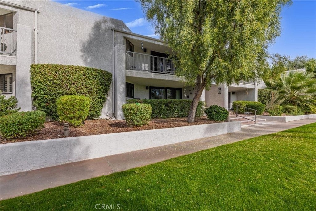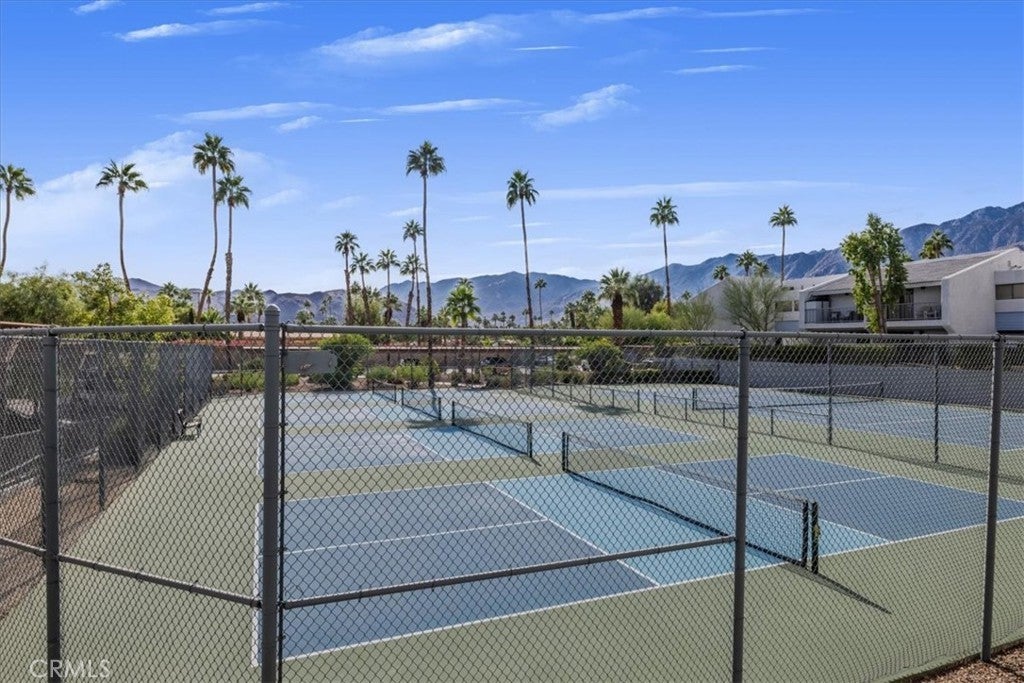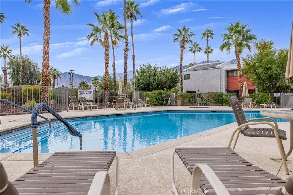 SELLER IS WILLING TO NEGOTIATE BUYER CONCESSIONS UP TO $8k TOWARDS BUYER'S INTEREST RATE BUY DOWN!!! This unit is located in The Palms— a beautiful, well maintained gated community in the heart of the Beverly Hills neighborhood of Palm Springs, designed by famed architect Hugh Kaptura. Offering refined desert living and unbeatable access to nature, world-class dining, shopping, entertainment and conveniently located just a few minutes away from downtown Palm Springs. This upper residence offers approximately 1,230 sq. ft. of indoor living with 2 bedrooms and 2 updated bathrooms. Vaulted ceilings with clerestory windows, the unit offers a bright, open layout. Enjoy abundant natural light from skylights in both the entryway, master and guest bathroom. Take in stunning south-facing serene mountain and lush landscape views from your living room balcony. A second private balcony off the master bedroom offers a peaceful retreat with north-facing views. The kitchen features granite countertops and stainless steel appliances, and the unit includes a washer and dryer for added convenience. Resort-style amenities include: • Two sparkling pool-and-spa with cool-deck lounging areas and BBQs • Tennis and pickleball courts • Gated entrances with smartphone access and paver-finished driveways • Assigned covered parking, ample guest parking, and EV charging hook-ups Just steps from the recently converted Prescott Preserve—soon to be a 120-acre nature park—you’ll enjoy daily access to walking and biking paths, wildlife observation, and endless outdoor inspiration. Sunrise Park, Demuth Park, and major retailers are close by for added convenience. Located on Fee Simple land (You Own the Land!) Furnishings are negotiable for those seeking a turnkey option, this residence offers excellent flexibility—whether as a full-time home, vacation home, or an investment opportunity. Beautiful matured fruit trees, meticulously maintained grounds and a warm, welcoming community complete the offering. Discover the perfect blend of style, comfort, and Palm Springs lifestyle—this home is ready to shine for its next owner!