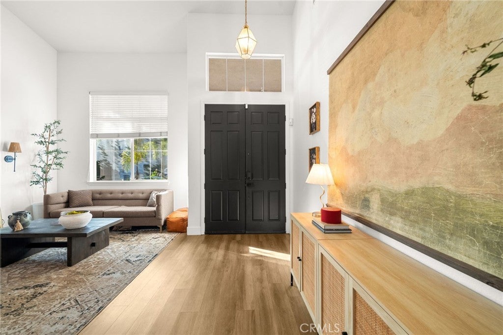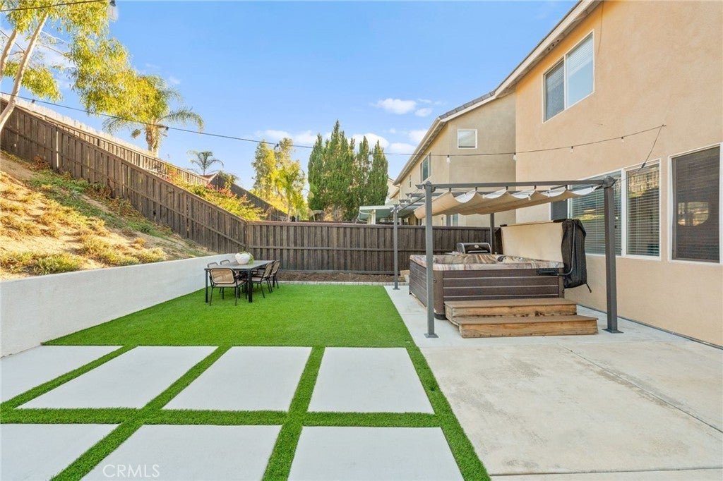 Welcome to this inviting 4-bedroom, 2.5-bath home offering 2,109 sqft of comfortable living space. You are close to EVERYTHING at this location! Upon entry, you’re greeted by soaring high ceilings and luxury vinyl plank flooring that runs throughout the home, creating a bright and cohesive flow. This west-facing home enjoys excellent natural light throughout the day, filling every room with warmth and openness. The spacious primary suite features high ceilings, fresh paint, and plenty of room to relax. One of the secondary bedrooms also boasts vaulted ceilings and new paint, adding extra character and dimension. The backyard has been completely redone with a combination of fresh concrete, custom pavers, high-quality turf, and decomposed granite plus a retaining wall, provides additional usable space and the luxury above-ground hot tub (included and in excellent condition) offers the perfect spot to unwind. Exterior fencing has recently been painted. Additional features include a newer water heater, fully painted interior, 2-car garage, and a beautifully landscaped front yard with green grass, rose bushes, and palms for great curb appeal. This home combines space, style, and thoughtful updates in a bright and welcoming setting.