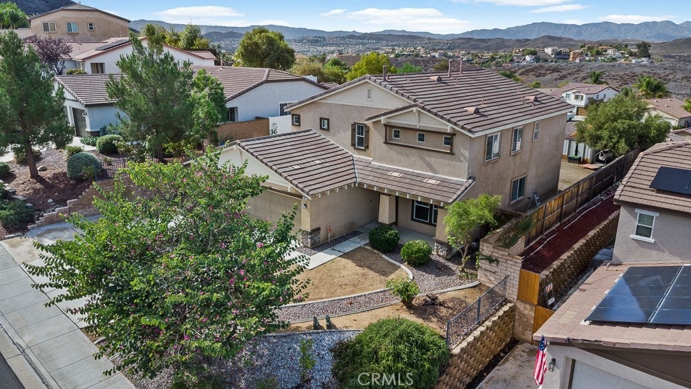 Beautiful 4-Bedroom Home with 33 Solar Panels in Highly Desirable Canyon Heights! Welcome to this stunning two-story home, perfectly situated on a quiet cul-de-sac in the sought-after Canyon Heights community of Menifee. Boasting 2,883 sq ft of thoughtfully designed living space on an 8,276 sq ft lot, this home offers 4 bedrooms, a main-floor bonus room that can easily serve as a 5th bedroom, 2 full bathrooms and an half bathroom on the main level, and an upstairs loft—ideal for everyday comfort and versatile living. This property features a fully paid-off solar panel system, consisting of 33 high-efficiency panels approx. 350 watts each This impressive setup helps reduce monthly energy costs, supports environmentally friendly living, and enhances overall property value. The new owner will enjoy immediate energy benefits, long-term efficiency, and increased independence from rising utility rates. Step inside to an inviting open-concept layout where the spacious kitchen takes center stage. Featuring a large granite island, custom backsplash, abundant cabinetry, and generous prep space, this kitchen is perfect for the home chef and effortless entertaining. The seamless flow into the living and dining areas creates a warm, connected environment for gatherings of any size. The curb appeal is exceptional, highlighted by a beautifully landscaped front yard and a 3-car garage with enhanced functionality. One single-car bay has been enclosed for additional usable space and includes a 240-V EV charger—a valuable upgrade for electric vehicle owners. The backyard is large, private, and flat, with no rear neighbors and peaceful neighborhood views—an ideal outdoor space for relaxation, entertaining, or future customization such as a pool, outdoor kitchen, or garden. Located within walking distance to Quail Valley Elementary School, this move-in-ready home is perfect for families. Canyon Heights is a well-established community of only 394 homes, known for its low taxes, quiet atmosphere, and strong pride of ownership. Don’t miss this rare opportunity to own a highly upgraded home with PAID-OFF solar in one of Menifee’s most desirable neighborhoods!