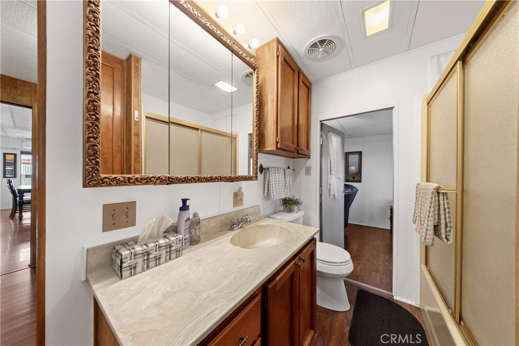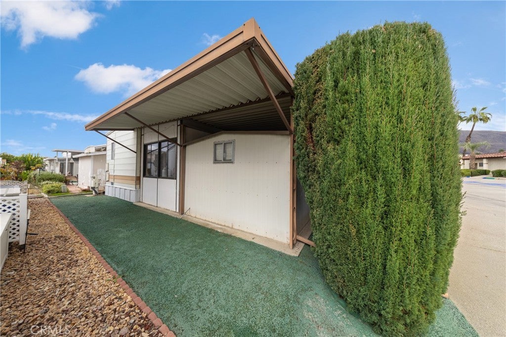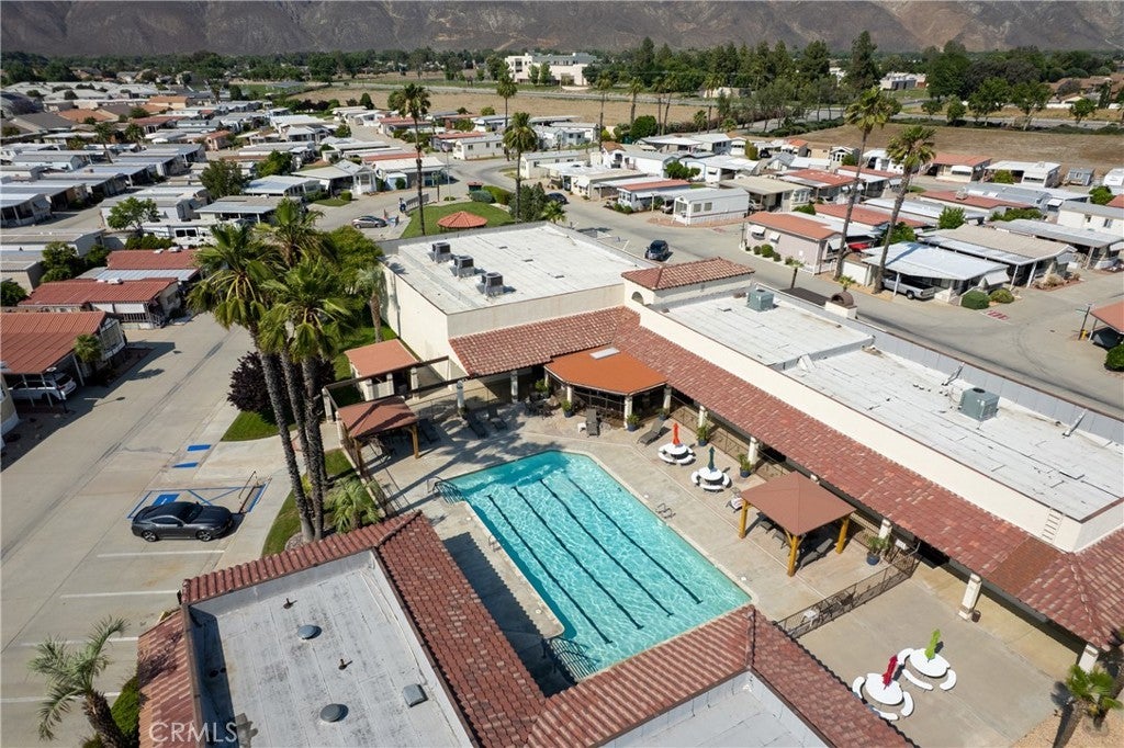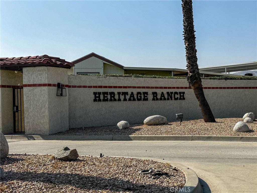 Truly exceptional park model home with bonus room in Heritage Ranch senior RV resort gated community. Gorgeous view of the mountains from the front room and covered patio deck. Step-saver kitchen has real wood finished cabinets, Formica counter tops, mini breakfast bar, electric stove, and refrigerator. Unique floor plan boasts a center bedroom with dual mirrored wardrobes and full bath (tub/shower combo), built in linen storage, and a exceptionally large vanity area for a park model. Insulated and permitted 8.5 x 17.5 bonus room accessible from the interior of home. Mini-split ductless heat and air plus a wall A/C. Newer Laminated wood flooring and custom honeycomb blinds throughout. Ceiling fans. Storage shed. Special feature: Outdoor heat lamp to keep guests cozy while enjoying a view of snow-capped mountains. HOA fee includes sewer, trash, water, basic cable and internet.