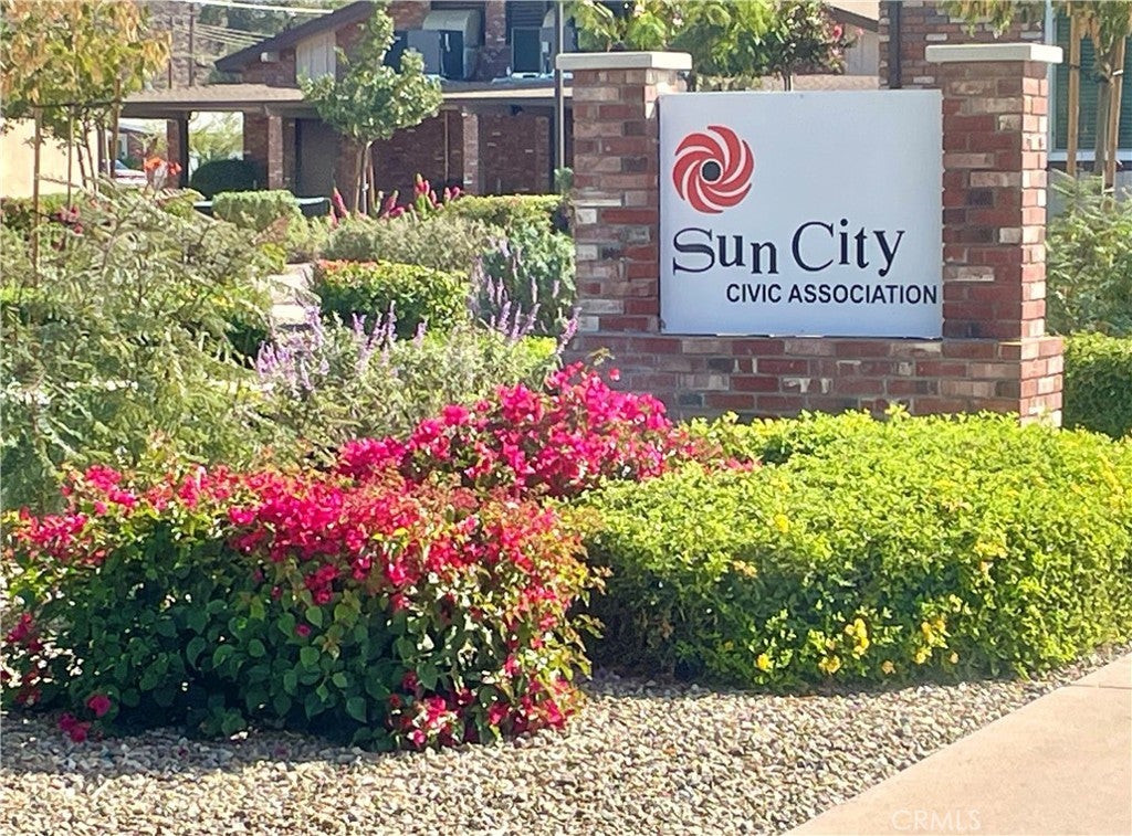 This home is a stand-out. Great curb appeal. Charming and spacious. Thoughtfully updated and well-maintained. Immaculate. A friendly open-feel floor plan with plenty of natural light and peaceful views. This two bedroom, two bath, plus expansive bonus room boasts many upgraded features such as a stylish renovated kitchen, newer roof and newer HVAC, new cooktop and range hood and new exterior paint. Other pleasures include a roomy en-suite step-in shower, cozy bath tub, ceiling fans through-out, wood faux blinds, gorgeous laminate and tile flooring in the main rooms, and plush new carpet in the bedrooms. The large bonus room is for you to decide - a dining room, den, office, hobby, recreation or family room – your choice. No immediate rear neighbors! The living room spills into the panoramic views of the bonus room which opens lavishly to the covered patio and reveals a wildlife enclave – a swath of the great outdoors – the park-like greenbelt. Enjoy the rolling hills backdrop and picturesque beauty from a drought-tolerant, low maintenance yard shaded by mature fruit trees: orange, lemon, grapefruit and pomegranate. Conveniently close to restaurants, shops, services, transportation and the 215 freeway. The 55+ community of the Sun City Civic Association offers a low annual HOA fee, two sparkling swimming pools, a large spa, well-equipped gym, pickle ball court, multi-tabled billiards room, wood shop machinery, classes, social opportunities, activities, an amphitheater and more! Some photos include the use of virtual furniture to aid in viewer's understanding of the space.