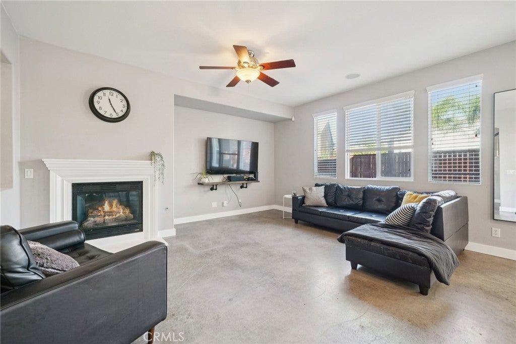 Beautiful curb appeal and an inviting open floorplan welcome you to this lovely home in the desirable Village of Avalon community. Clean landscaping and a well-maintained exterior. The main level features a bright and open living, dining, and kitchen area—perfect for everyday living and entertaining. The living room has a fireplace for a cozy setting. The kitchen offers a center island with bar seating and ample storage. A slider door opens to the backyard, where a spacious patio provides an ideal setting for outdoor dining, lounging, or hosting gatherings. Upstairs, a versatile loft area offers additional living space for a home office, playroom, or media zone. Three well-sized bedrooms include a generous primary suite with a walk-in closet and an en suite bathroom featuring a separate shower and soaking tub. Two additional bedrooms share a full bathroom, completing the upper level. The Village of Avalon HOA provides fantastic community amenities, including a pool, spa, playground, and picnic & BBQ areas. A leased solar system provides energy efficiency and savings. Conveniently located near schools, markets, and dining options, this home offers both comfort and convenience in a wonderful neighborhood.