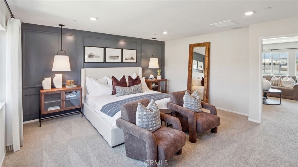 The Plan 2929 square foot MultiGEN home has a separate private entry off the front side of the home that leads to the suite's lounging area with kitchenette, a stackable laundry closet and bedroom with full bathroom. Also downstairs in the main home is an open concept Great room, dining area, island kitchen with breakfast bar, Quartz counter tops, stainless steel appliances, with pantry closet, a guest bedroom and full bathroom. Upstairs, the primary bedroom has an ensuite and walk-in closet, a large loft, laundry room with folding counter, two additional bedrooms and full bathroom. There is Smart Home technology throughout, solar panels installed, and a 2-car garage pre-plumbed for an electric car. The home is also fully irrigated and landscaped in the front yard. We anticipate the home will be ready for move in March of 2026.