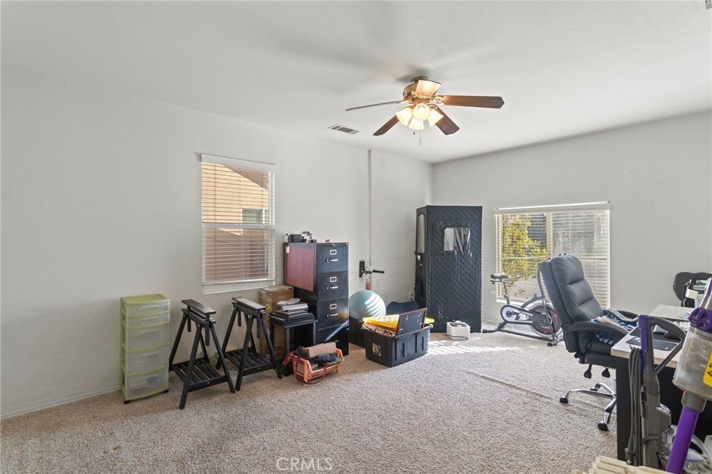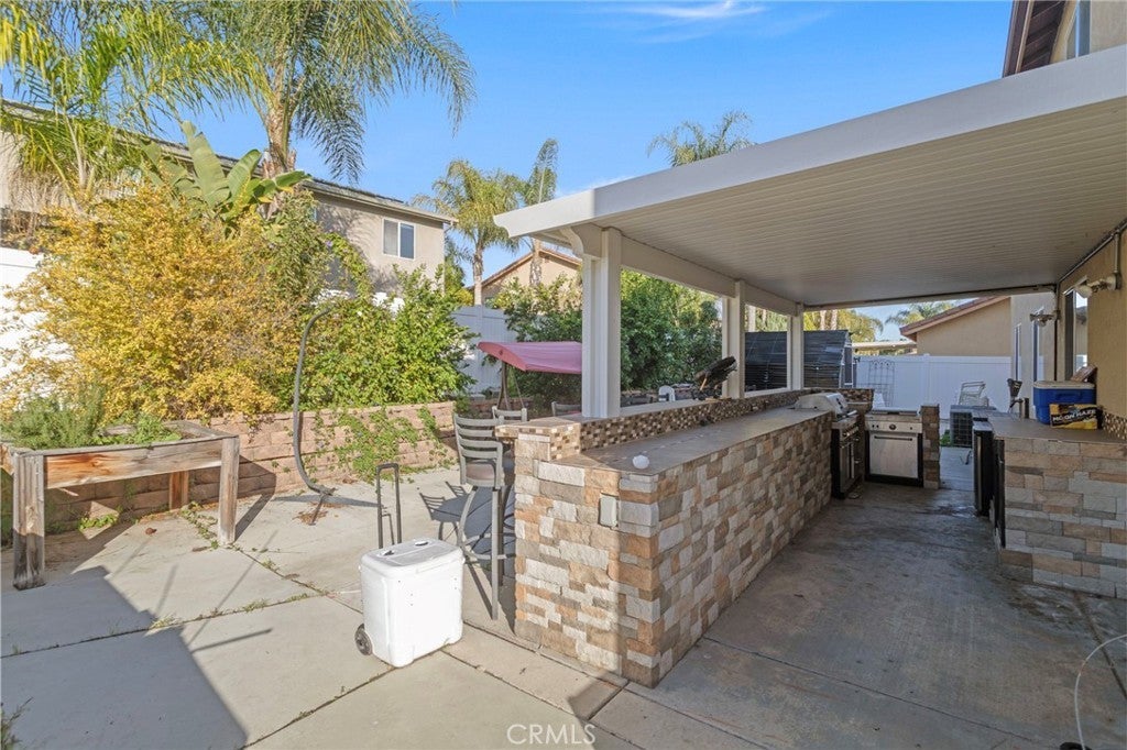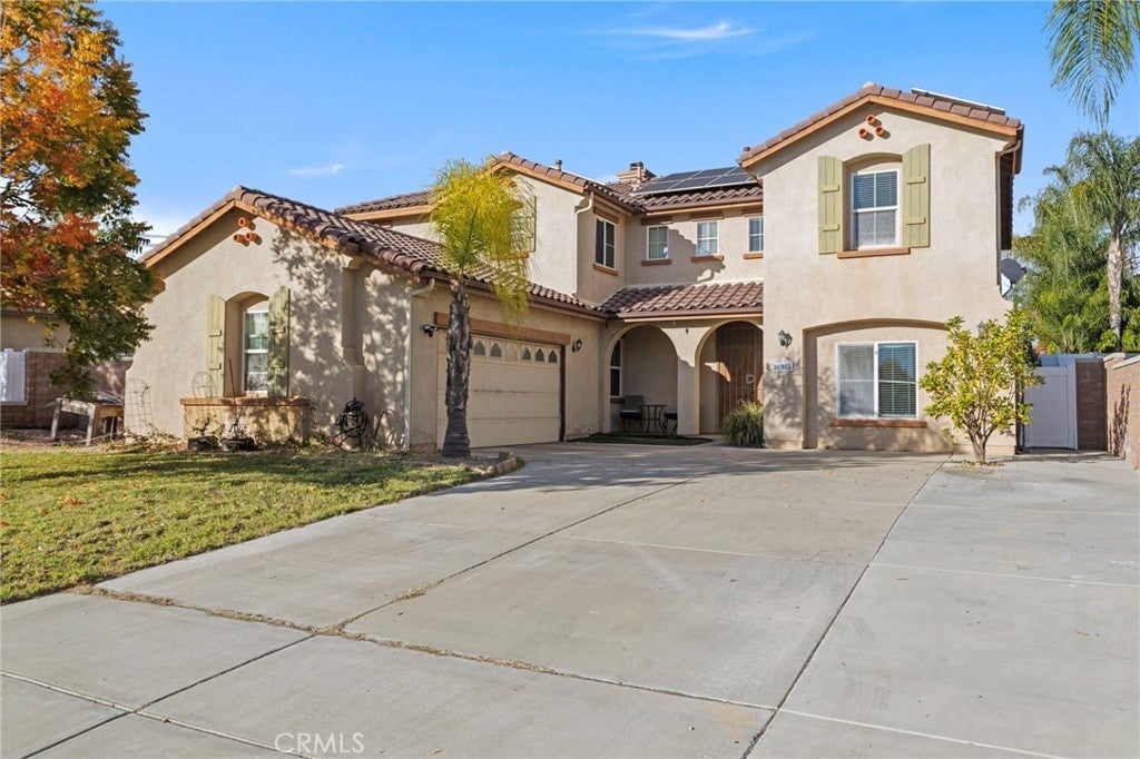 Stunning 5-bedroom home in prime Menifee location – NO HOA! Welcome to this spacious 3,192 sq. ft. residence offering the perfect blend of comfort, convenience, and upgrades. Situated directly across from a beautiful park and just minutes from top-rated schools, shopping, and freeway access, this home delivers an exceptional lifestyle inside and out. Step inside to a thoughtfully designed open-concept floorplan featuring a large downstairs office, ideal for remote work, plus a convenient main-level bedroom and full bath—perfect for guests or multigenerational living. The heart of the home is the beautifully remodeled kitchen (2020) showcasing a large island, granite countertops, double oven, and generous seating at the bar—seamlessly flowing into the expansive family room with a cozy fireplace and a separate dining room for entertaining. Upstairs, you’ll find four additional bedrooms, including the spacious primary suite with a walk-in closet, along with an additional full bathroom with dual sinks, a large loft, a dedicated laundry room, and ceiling fans throughout the home. Step outside to your own private retreat—a large backyard complete with a patio cover and an incredible built-in BBQ island equipped with a grill, flattop, fridge, and ample countertop seating. The yard is also home to a variety of mature fruit trees, including lemon, lime, pomegranate, orange, mandarin orange, apple, calamities and pomelos offering fresh, homegrown produce and a beautiful, garden-like setting—perfect for hosting gatherings or enjoying quiet evenings outdoors. The spacious driveway offers ample parking with room for at least six vehicles plus dedicated RV parking—ideal for all your toys and guests. Enjoy energy savings year-round with paid-off solar featuring 27 panels, helping you keep your AC running comfortably while reducing utility costs. This home truly has it all—space, upgrades, energy efficiency, prime location, and the added benefit of no HOA. Don’t miss the opportunity to make it yours!