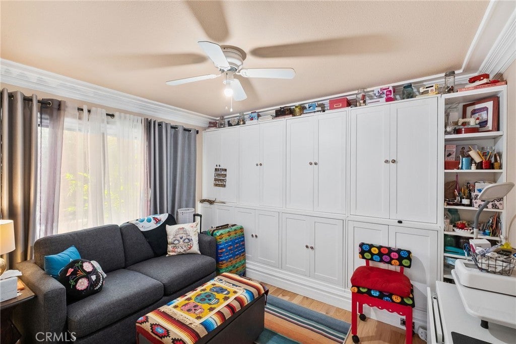 - Interior FeaturesBreakfast Bar, Breakfast Area, Ceiling Fan(s), Crown Molding, Pantry, Recessed Lighting, Storage, Tile Counters, All Bedrooms Down, Attic, Bedroom on Main Level, Walk-In Pantry, Pull Down Attic Stairs