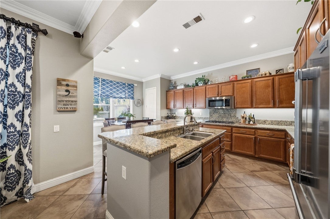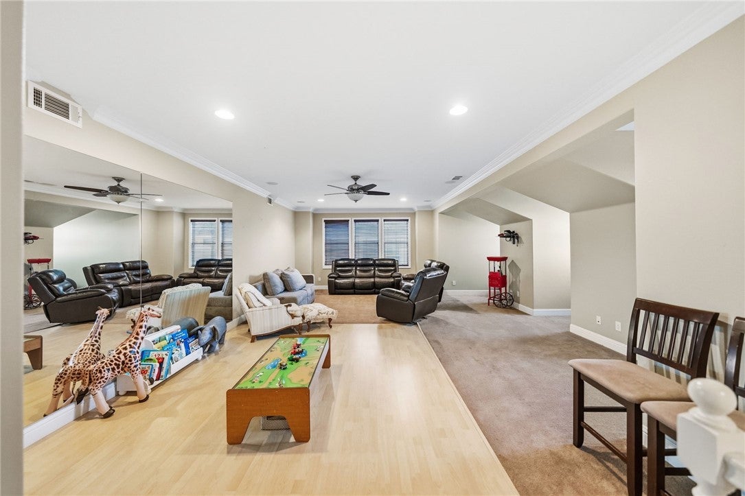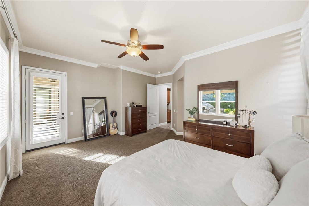 • Interior FeaturesBreakfast Bar, Breakfast Area, Ceiling Fan(s), Crown Molding, Cathedral Ceiling(s), Separate/Formal Dining Room, Granite Counters, High Ceilings, Bedroom on Main Level, Main Level Primary, Walk-In Closet(s)