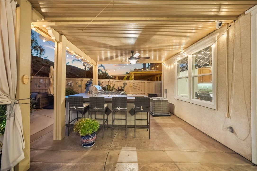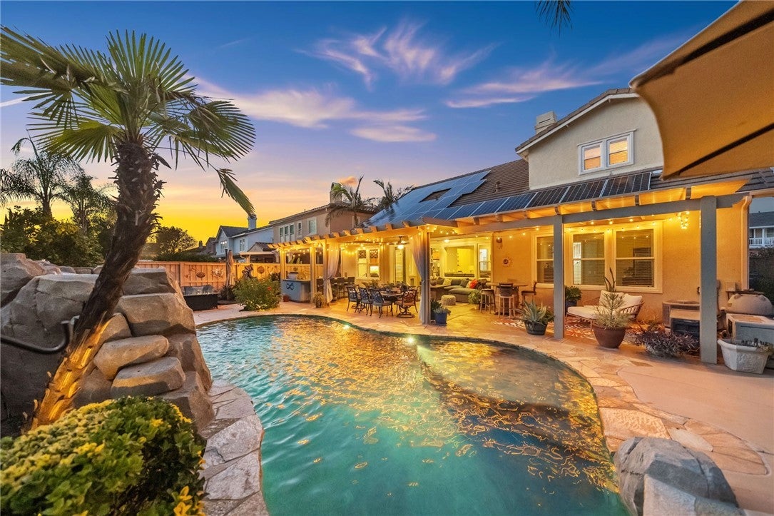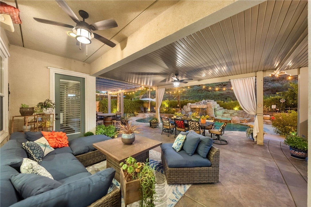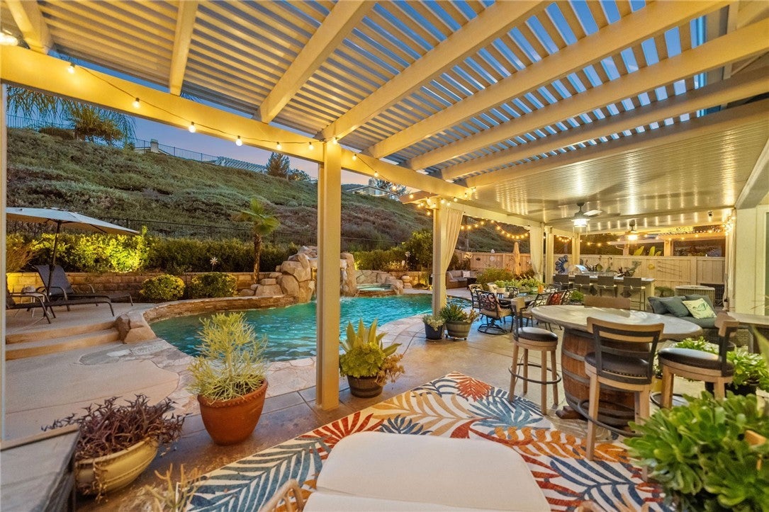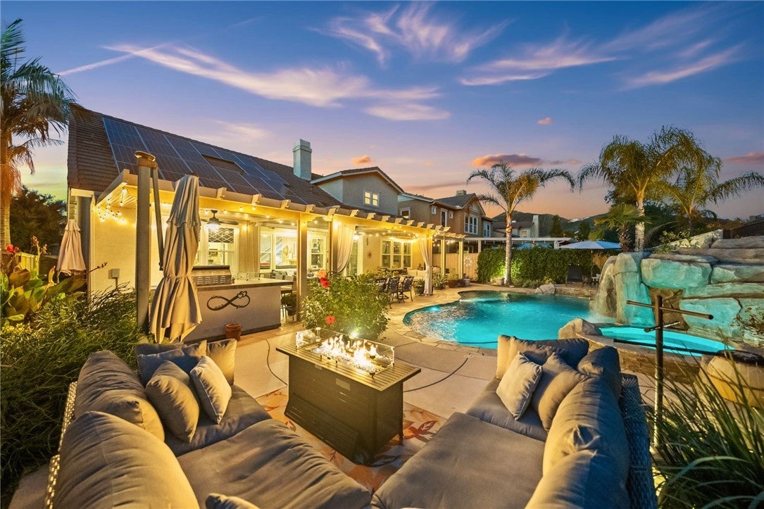 Welcome to Bridgegate an exclusive, gated enclave nestled within Canyon Hills, where luxury living meets timeless comfort. This exceptional residence offers a true single-story experience with a main-floor primary suite, secondary bedroom, and dedicated office, all designed for seamless, elevated living. Step through the grand, wainscoted entry and immediately take in the view of the resort-style backyard through stunning, oversized windows. The great room exudes elegance with high ceilings, refined crown molding, custom built-ins, and a warm fireplace, creating an inviting space for both relaxation and entertaining. The formal dining room connects effortlessly to the great room, offering the perfect setting for sophisticated gatherings. The open kitchen includes an additional dining area and overlooks your private outdoor oasis. The expansive primary suite on the main level features a spacious bathroom with dual sinks, a walk-in shower, and a soaking tub. A separate main-floor bedroom and bath sit on the opposite wing for added privacy, while large glass double doors lead to an ideal office filled with natural light. Outside, luxury truly comes to life. Enjoy an upgraded BBQ island, perfect for elevated outdoor dining and entertaining, along with outdoor ceiling fans that enhance comfort year-round. The nearly new custom pool features a spa and grotto, creating a resort-quality sanctuary right at home. Upstairs, a generous loft offers abundant natural light with charming built-in cubbies—paired with an additional bedroom and bathroom that make this level perfect for a guest suite, multigenerational living, or a private retreat for an older child. Additional features include surround sound on both levels, a three-car garage, a whole-house fan, and the benefits of the Canyon Hills lifestyle with community parks, pools, and spas. This home blends luxury, comfort, and thoughtful design—an extraordinary opportunity in one of Canyon Hills’ most coveted gated communities.