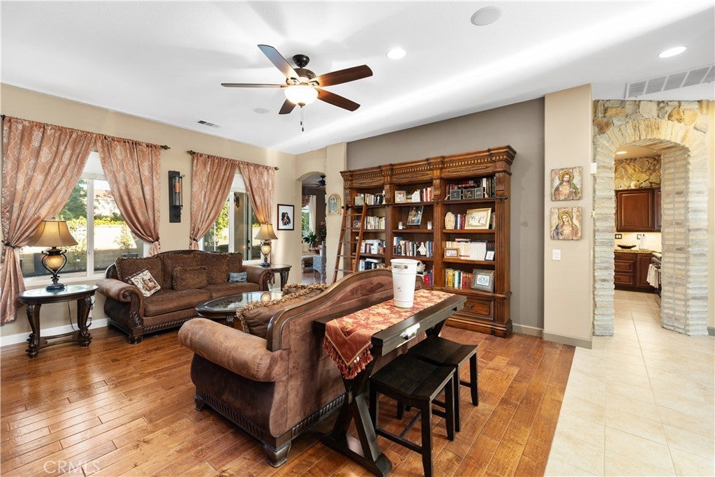 Beautiful Single-Story Home in Highly Desirable Paseo Del Sol- Nestled in one of Temeculas's most sought- after communities, this elegant single-story home offers the perfect blend of comfort, style, and privacy. Featuring 4 spacious bedrooms and 2 1/2 baths, this residence welcomes you with a gorgeous solid wood front door framed by beautifully designed stone work and charming gated front courtyard. Inside you'll find a warm and inviting layout with a combination of hardwood and tile flooring and beautiful coordinated shutters and designer shades throughout home. The remodeled chef's kitchen is the heart of the home complete with a large island, top of the line appliances, and pot-filler faucet, and plenty of space for cooking and gathering. Cozy reading nook w/bookshelfs for those quiet moments. The home offers multiple flexible living spaces, including a family room with a fireplace, Living and Dining area, and an additional room currently used as a prayer room, featuring stylish barn doors. The primary suite is a true retreat, showcasing double-door entry, a dual-vanity bathroom, tub and separate shower, a large walk-in closet. Enjoy exceptional privacy in the backyard, no neighbors directly behind you- Perfect for relaxing or entertaining. Enjoy the many amenities including pools, tennis courts, basketball courts, walking trails and more, This home is conveniently located near top-rated schools, shopping, freeways and Temecula Wine Country.