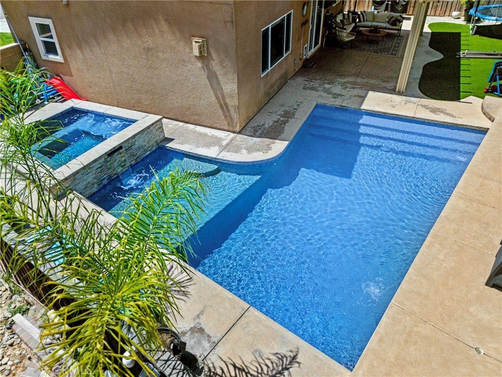 Welcome to your Dream Home in the highly desired community of Rancho Bella Vista-Perfectly situated at the end of a quiet cul-de-sac and close to top rated schools! This charming residence boasts incredible curb appeal with lush green landscaping and a cozy front patio that invites you in. Venture inside to discover a bright and open floor plan featuring a newly renovated kitchen with sleek quartz countertops, stainless steel appliances, and ample storage deal for both everyday living and entertaining. Upstairs, enjoy a spacious loft, a convenient laundry room, and three generously sized bedrooms, including a luxurious primary suite with a walk-in closet and private ensuite bathroom. Your backyard oasis awaits with no neighbors behind! Take a dip in the sparkling fenced pebble pool and spa, complete with a tranquil waterfall. Relax or entertain under the covered Alumawood patio with built-in lighting and a ceiling fan for year-round comfort. Additional highlights include a versatile studio or office space in the partially converted garage—perfect for remote work or creative pursuits—and a lease-to-own solar system for energy efficiency. Walking distance to top-rated schools, parks, hiking trails, shopping centers, and close to Temecula Wine Country, this home offers the perfect blend of comfort, style, and convenience. Don’t miss out—schedule your private tour today!