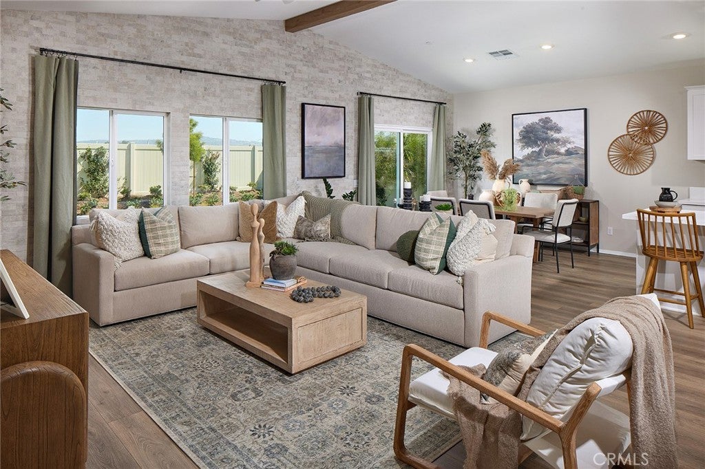New Construction - MODEL HOME - This spacious 1,898 square foot [single story] [4] bedroom [3] bath home with a California Spanish inspired façade located on a cul-de-sac. With a wide entry that leads to the open concept Great room with vaulted ceiling, Dining area with slider leading to the back yard, a kitchen island with breakfast bar, Bianco Tiza Quartz counter tops, stainless steel appliances, and a pantry space. All four bedrooms are generously sized, the ensuite has a large walk-in closet, and the laundry room is conveniently located just off the main hallway. The home has crisp white shaker-style cabinetry and designer vinyl and carpet throughout. This truly modern home has all the Smart Home features you would expect, including a direct-access [3]-car garage pre-plumbed for an electric car! This homesite is fully landscaped and irrigated. The community has easy access to nearby shopping, dining, entertainment, highways and freeway. This home is ready to move in by December 2025 and Solar is Included in the Price of This Home !!