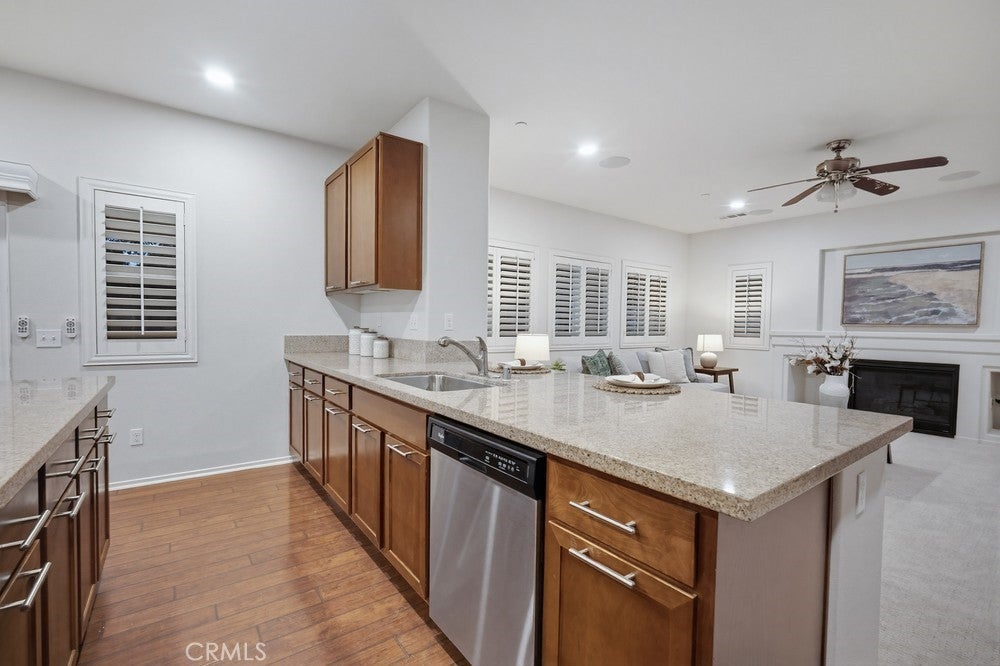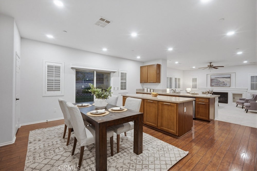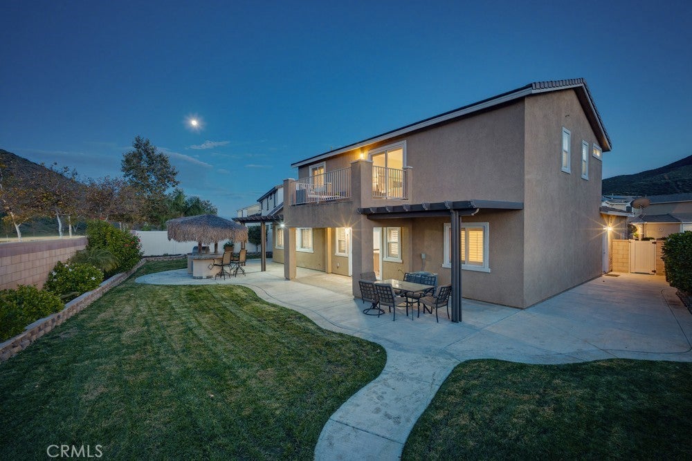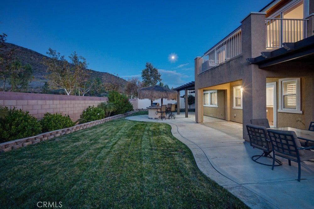 CHECK OUT THIS TURN-KEY STUNNING home LOADED with upgrades ~conveniently located between the 15/ and 215 freeway~ AWESOME for commuters and within minutes of the famous DIAMOND "STORM" STADIUM, the local venue for INCREDIBLE entertainment whether you're into baseball or an awesome Halloween Festival! Or if you're into outdoor water sports, Lake Elsinore is also conveniently close and perfect for the fisherman and boating/enthusiast! Welcome to this storybook family home in HIGHLY sought-after Canyon Hills, where charm, comfort, and thoughtful upgrades come together beautifully. From the moment you arrive, the home greets you with stunning curb appeal, highlighted by brick facia, professional MATURE landscaping, and a peaceful front patio perfect for morning coffee. A large covered front porch sets the tone for the warm, inviting spaces within. Step inside to find an open entryway with gorgeous wood flooring, plantation shutters, and natural light throughout. The heart of the home is the massive chef’s kitchen, featuring upgraded cabinetry and handles, sleek granite countertops, a spacious island, and an oversized walk-in pantry—ideal for cooking, hosting, and everyday family life. The family room is anchored by a beautifully finished fireplace, creating a cozy gathering spot for evenings at home. All bedrooms are generously sized, offering comfort for the whole household. The large primary suite is a true retreat, complete with a HUGE private balcony overlooking the hillside—the perfect place to unwind with a cup of coffee and take in the tranquil views. Step into the backyard and discover an entertainer’s paradise: • Alumawood-covered patio running the full length of the home • Outdoor kitchen beneath a tropical-style Palapa hut • Expansive concrete entertaining pad • Concrete pathways extending along the side of the home • A scenic hillside backdrop framing the rear yard Whether you’re hosting gatherings or enjoying peaceful evenings outdoors, this home offers a lifestyle of comfort and beauty inside and out.