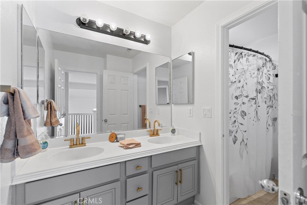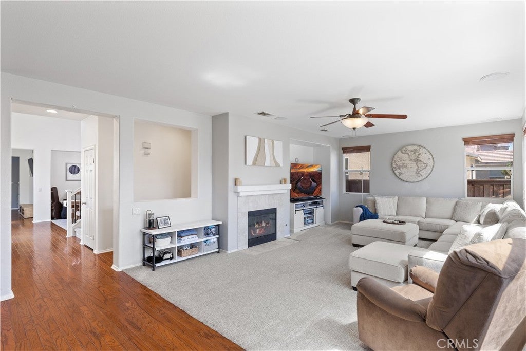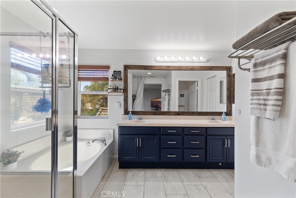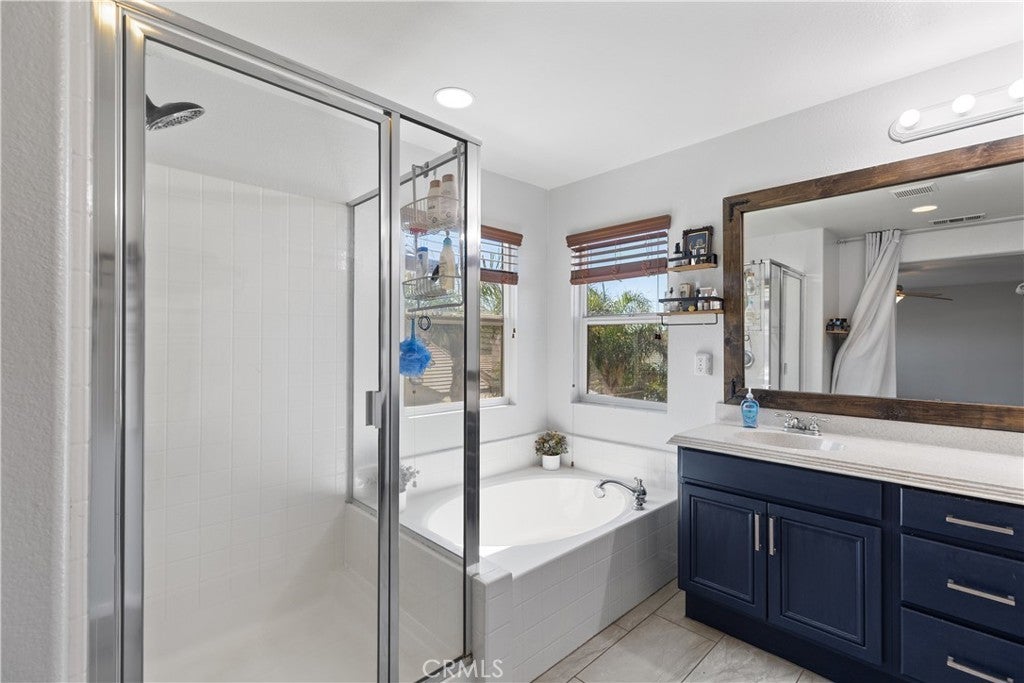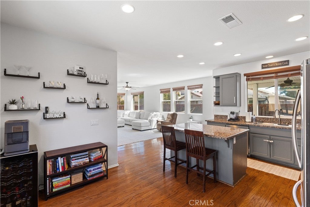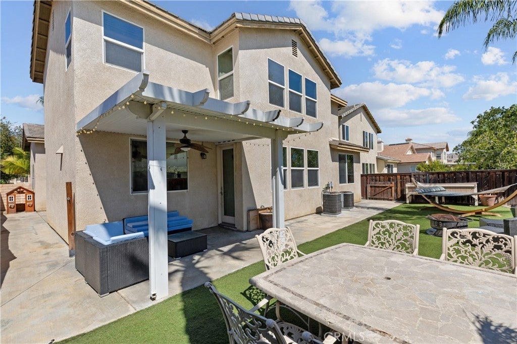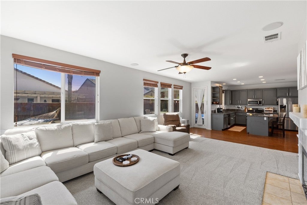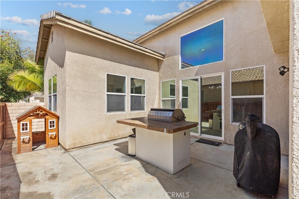 Welcome to this spacious 2-story home in the gated Tierra Shores community of Menifee. Offering 4 bedrooms, 3 bathrooms, and 2,778 sq. ft. of comfortable living, this home blends style and function in all the right ways. The updated kitchen features granite countertops, stainless steel appliances, and plenty of cabinet space, flowing seamlessly into the open family room with a cozy fireplace and abundant natural light. A formal living and dining room with high ceilings add to the homes inviting layout. One of the standout features of the main level is the side courtyard with a built-in grill station, perfect for entertaining in addition to the backyard patio. Upstairs, the primary suite is filled with light and includes a walk-in shower, soaking tub, and dual vanities. Two secondary bedrooms share a rare balcony overlooking the front of the home, while the backyard is designed for low-maintenance enjoyment with space to relax and entertain. Living in Tierra Shores means access to a scenic lake, clubhouse, pool, and more, all within a secure gated setting. Conveniently located near Domenigoni Parkway, I-215, shopping, and Mt. San Jacinto College, this home delivers both comfort and community.
