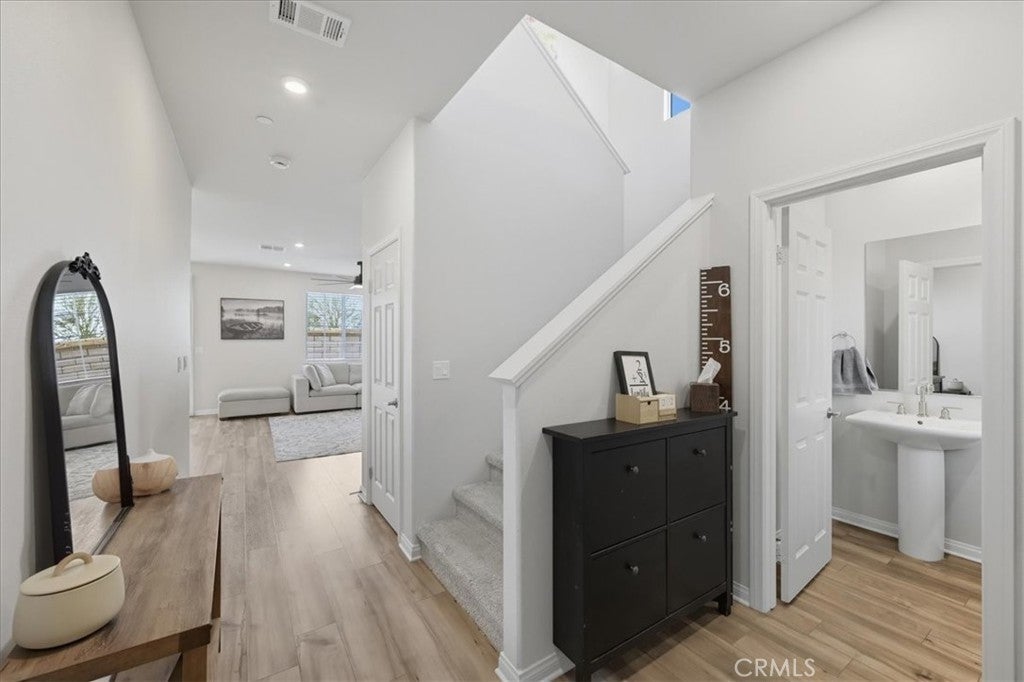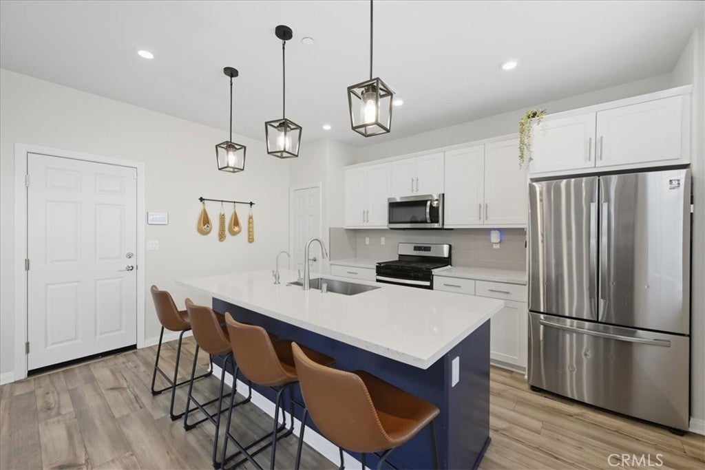 First Time on the Market, Paid Off Solar, Turn-Key Ready, 3 Bedrooms, 2.5 Bathrooms, TWO LOFTS & many UPGRADES!! Welcome to 26960 Red Dr, located in the highly desired community of The Village in Menifee. This STUNNING two-story detached condo home lives and feels like a single-family home. It is one of the few homes in the neighborhood that offers both a long driveway and a larger backyard—a rare find! Featuring 3 bedrooms, 2.5 bathrooms, and 2,021 sq. ft. of living space, this home also boasts two versatile lofts—one that can easily be converted into a 4th bedroom, and the other ideal for an office, study, or playroom. Step inside and you’ll be greeted by an inviting open-concept floor plan. A long foyer leads to the expansive living room and a well-appointed kitchen with quartz countertops, stylish backsplash, pendant lighting, and a large center island, perfect for entertaining and everyday living. Upgrades include: • Paid-off solar • Pre-wired for electric vehicle charging • Luxury vinyl plank flooring & plush carpet • Satin paint in some areas of the home • Whole-home water filtration system + alkaline drinking filter in kitchen • Ceiling fan in living room • Added electrical outlet & wiring behind TV wall • Epoxy flooring in 2-car garage Outdoor Features: • Stamped cement, grass, cement borders, drip system & programmable sprinklers • Gas & water lines routed for a future built-in BBQ • Fruit trees: lemon, lime, and nectarine (newly planted) Community Amenities: • Sparkling pool & park • HOA only $193/month Perfectly located near the 215 freeway, shopping, dining, and schools, this home is move-in ready and waiting for its new owners!