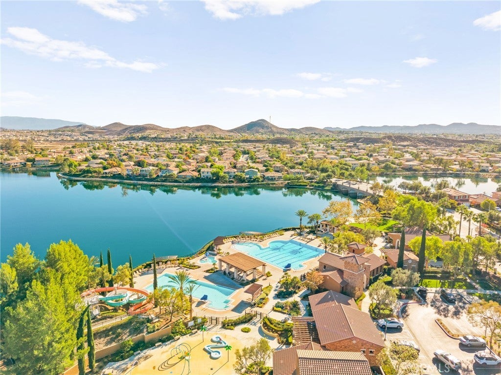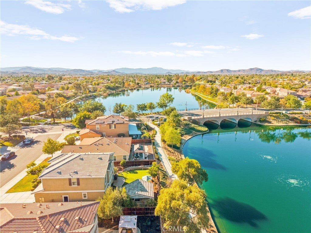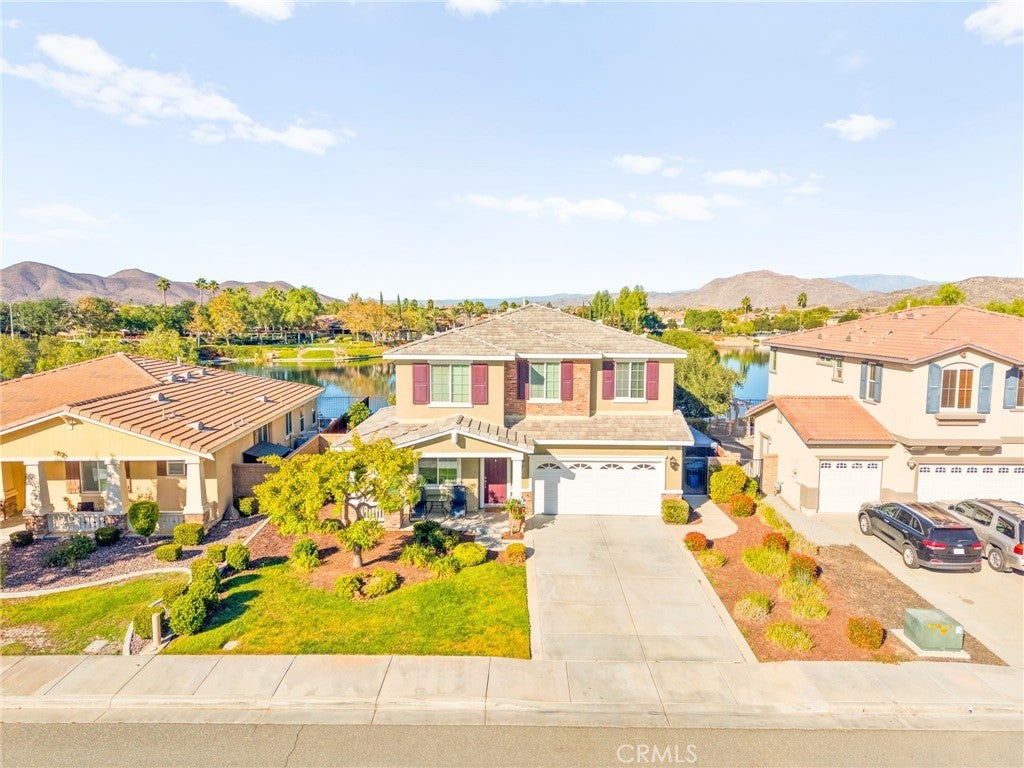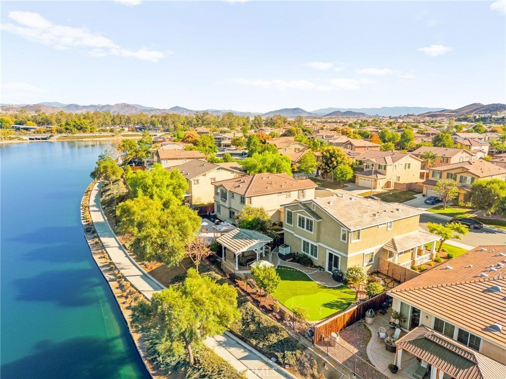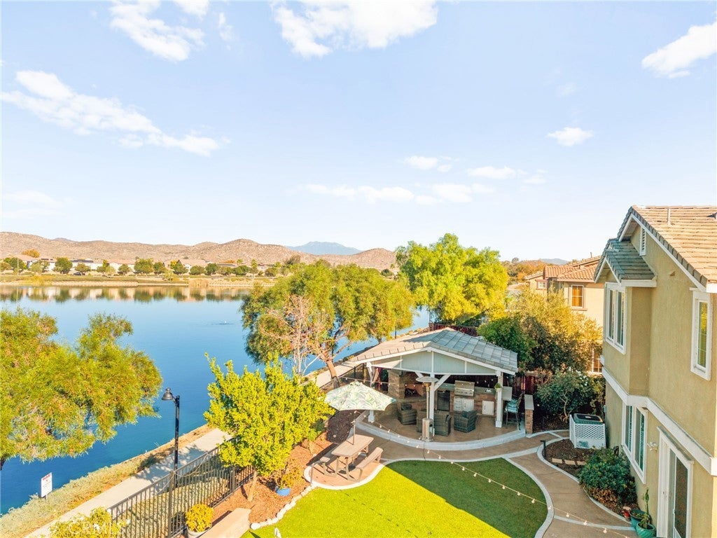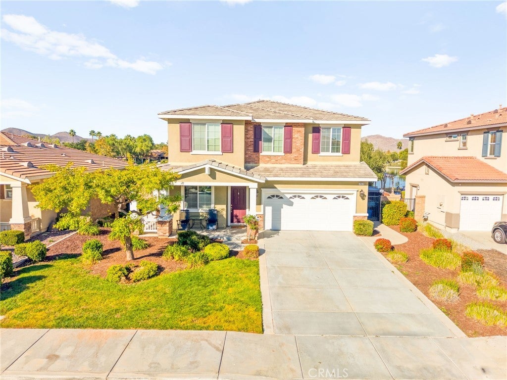 Rare lakefront property in the highly sought after gated community of The Lakes in Menifee. Nestled on a quiet cul-de-sac, this home offers direct lake frontage with breathtaking panoramic water views. Perfectly positioned to capture views of the community clubhouse and the charming bridge across the water, this is a location that rarely becomes available. This stunning 4 bedroom, 2.5 bath residence offers approximately 2,204 square feet of stylish and functional living space. Step inside to a bright, open concept interior featuring beautiful luxury vinyl plank flooring and an inviting layout ideal for both everyday living and entertaining. The kitchen blends comfort and contemporary elegance with sleek quartz countertops, modern finishes, and ample space to gather. As you go upstairs the primary suite provides a peaceful retreat at the end of the day, while the additional bedrooms offer flexibility for family, guests, or a home office. Every detail of this home is designed to maximize comfort, style, and the incredible waterfront setting. The backyard is truly one of a kind an entertainer’s dream and a personal lakeside oasis. Enjoy direct water views while relaxing under the generous covered patio, hosting weekend cookouts with the built in BBQ, or practicing on your private putting green. Low maintenance turf and stamped concrete add an upscale touch while creating a functional and visually striking outdoor space. Whether sipping morning coffee by the lake or hosting unforgettable sunset gatherings, this backyard delivers an unparalleled lakeside lifestyle. Upstairs, all four bedrooms are thoughtfully laid out for comfort and privacy. Living in The Lakes means enjoying gated security and resort-style amenities, including a clubhouse, pool, splash pad, scenic walking trails, parks, and picnic areas all just moments from your front door. Conveniently located near shopping, dining, excellent schools, and freeway access, this home offers both tranquility and convenience. With its serene lakeside setting, prime location, and resort caliber outdoor living, this home is more than a place to live it’s a lifestyle. Opportunities like this don’t come around often.