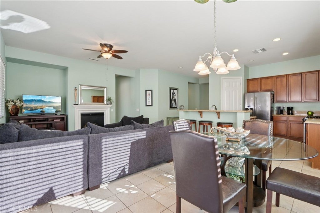 Welcome to your dream home in the highly sought-after 55+ Solera Diamond Valley Community! This beautiful 2-bedroom, 2-bathroom plus den home offers 1,782 sqft of thoughtfully designed living space perfect for relaxed, active living. Step inside to an open-concept layout where the living, dining, and kitchen areas flow seamlessly—ideal for entertaining or simply enjoying your day-to-day. Cozy up by the fireplace on cooler evenings or step through the sliding glass door to your enclosed patio, a perfect spot for morning coffee or afternoon relaxation. The home features spacious bedrooms for ultimate comfort, and a kitchen equipped with a refrigerator, washer, and dryer included for added convenience. Outside, enjoy drought-tolerant landscaping and easy-maintenance front and back yards, allowing you to spend more time enjoying the community and less on upkeep. This home combines style, comfort, and practicality in a vibrant, welcoming 55+ community—don’t miss the opportunity to make it yours!