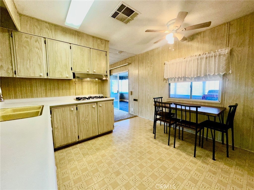 Priced to Sell - Seller Ready for quick sale! Affordable opportunity to update and make it your own!! 1-bedroom, 1-bath manufactured home with BONUS ROOM running the length of the home to give you additional living space. Located in the desireable Eden Roc Village 55+ senior community. Residents enjoy a gated entrance and amenitites including a clubhouse, pool, jacuzzi, BBQ area, billiards, indoor laundry facilities, and spacious rec room with ktichen - all included in the monthly space rent. RV storage available for an additional fee. The home features a kitchen and dining area open to the living room, plus a versatile bonus room extending the length of the home, offering valuable additional living space. An indoor laundry area with washer and dryer is conveniently located at the end of the bonus room. The bedroom offers two closets, and the bathroom includes a walk-in shower and linen storage. Ceiling fans, a wall AC unit, evaporative cooler, and newer water heater add comfort and convenience. Outside, a spacious cement patio provides a blank canvas for outdoor seating, gardening, or entertaining. Conveniently located near shopping, dining, and medical facilities.