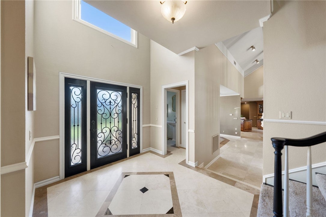 • Interior FeaturesBuilt-in Features, Breakfast Area, Ceiling Fan(s), Separate/Formal Dining Room, Granite Counters, High Ceilings, Recessed Lighting, Bedroom on Main Level, Main Level Primary, Walk-In Closet(s), Central Vacuum, Chair Rail, Intercom