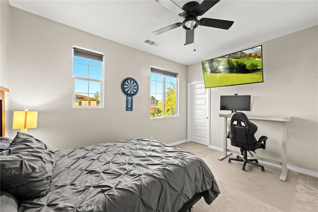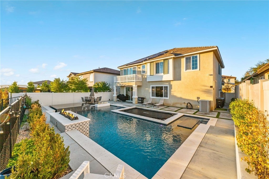 Discover a truly rare and exceptional offering in the heart of Temecula. This meticulously maintained residence, presented by its original owner, from its stunning resort-style backyard to its smart home features and unparalleled location, this property defines contemporary luxury and effortless California living. The open-concept design is anchored by premium, durable tile flooring that flows seamlessly throughout the entire main level, complemented by high-quality carpet reserved only for the stairs and comfortable upper-level bedrooms.The heart of the home is the Gourmet Chef's Kitchen, a masterpiece of function and style. The adjacent living room features a cozy Gas Fireplace, creating a warm, inviting space for relaxing evenings.This home offers incredible flexibility and convenience with a main level suite and full bathroom provides ideal accommodation for guests or multi-generational living. Upstairs, a spacious Loft area is surrounded by four generously sized additional bedrooms. The expansive Primary Suite is a true escape, featuring a private balcony overlooking your backyard oasis and serene meadow and rolling hills views, the perfect spot for morning coffee or an evening nightcap.Open the expansive sliding glass doors to reveal a backyard engineered for ultimate relaxation and entertaining. This is a five-star retreat that rivals any luxury resort. Enjoy the sparkling, deep blue waters of the custom, modernized Pebble Tec O-Zone Pool and Spa. The entire system is effortlessly controlled by the AquaLink App from your smartphone. A unique in-ground trampoline provides dedicated fun. Should you desire an ultimate outdoor kitchen, this area is already pre-plumbed and pre-wired for a BBQ island, with a dedicated suction system for water drainage.This is a modern smart home built for efficiency, security, and convenience. Benefit from significant energy savings with the home's Solar System, including an additional 10 panels.Three-Car Tandem Garage is a dream for hobbyists and EV owners, featuring built-in storage and two dedicated EV Chargers. Location is everything, and this property delivers. Moments from Pechanga Resort & Casino, Old town, championship golfing and the shopping at the Promenade Mall, and world-class tastings and events in renowned Temecula Wine Country. Quick and easy access to major freeways streamlines the daily commute. This is a lifestyle opportunity that simply cannot be replicated. Schedule your private showing today.