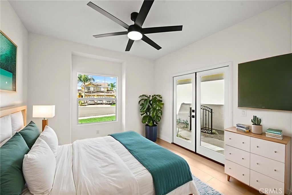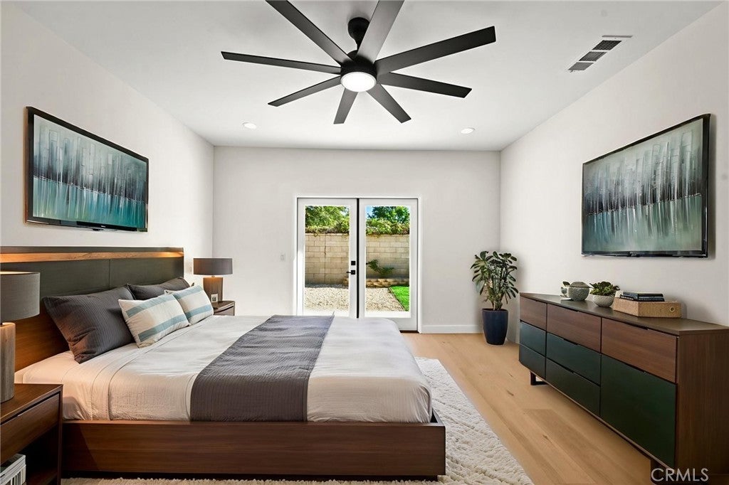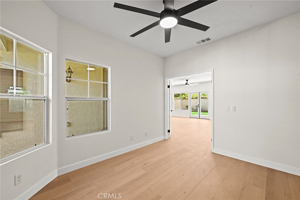Exceptional fully remodeled single story family home in Winchester Ca, located near restaurants and shops, just blocks from the approved and coming Murrieta Marketplace and falling inside the highly sought after Temecula School District. Upon entry, passing through the private gated courtyard, you are greeted inside with large open spaces finished in wide plank natural tone laminate flooring, fresh neutral paint, abundant amounts of natural lighting, in a highly desirable, multi-winged single level floor plan. The grand entry room is a versatile space, usable for a large living room, family room, dining area, game room or other multipurpose area that separates the north wing from the south wing of the home with rear yard access through French double glass doors. In the south wing adjacent to the grand entry and connected office/5th bedroom, you will find the open concept, large kitchen complete with large central island, finished in natural white oak cabinets and seated bar space. The kitchen and all other counters throughout are finished in modern, natural tone Taj Mahal high quality quartz, including bathrooms, laundry and entertainment cabinetry. Attached to the open kitchen is a great room style layout dining and living room area complete with fireplace, large ceiling fan and generous amount of recessed lighting. The remainder of the South wing offers 2 generous bedrooms with ceiling fans and a full bathroom, one of the bedrooms having its own French door entry from the courtyard, creating a mother-in-law, guest suite option. In the North wing is the large primary bedroom with double French door entry and glass French door rear yard private exit, connected to the primary bathroom suite complete with dual sinks, central vanity, soaker tub and a stand up shower. Additional in the North wing is another generous bedroom with private bathroom suite, and a spacious common area laundry room with wash basin. The spacious 3 car garage offers work bench and storage cabinets. Further upgrades include tankless water heater, all bedrooms have ceiling fans, generous amounts of recessed lighting throughout, and a high output 32 panel leased solar system. Outside, both front and rear yards are freshly fully landscaped on timed sprinkler systems. The exterior of the home additionally has been freshly painted. Located on a quiet cul-de-sac in a low tax area in the affordable HOA of Dutch Valley, this is an immaculate, well laid out, must see home on every level.
