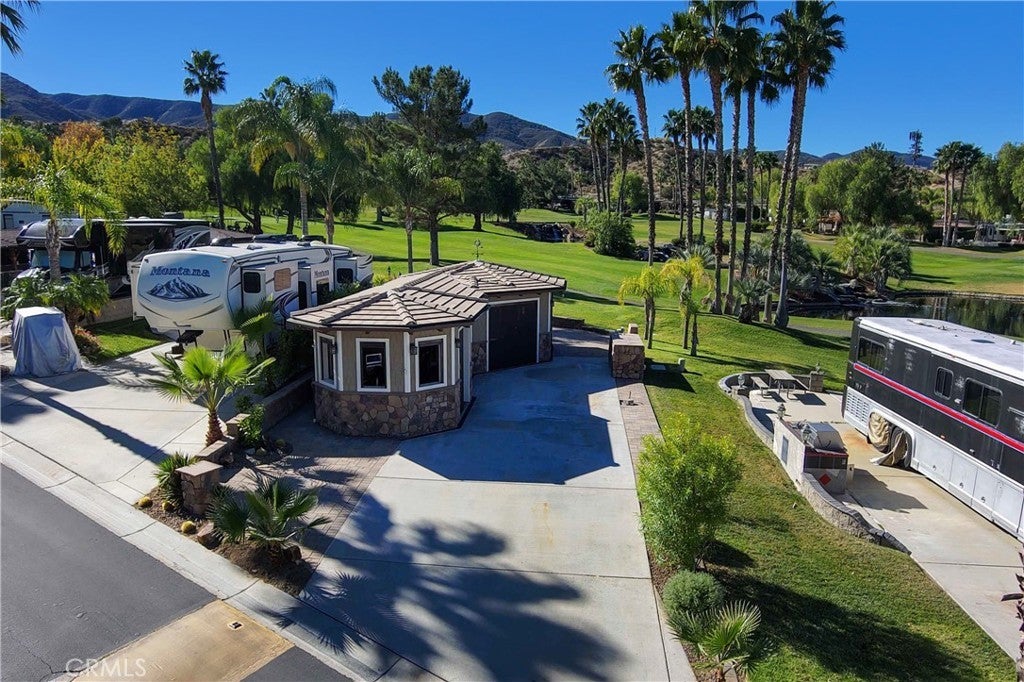 Amazing Waterfall Views with Sunset in the Background. Gorgeous Pond and Golf Course Panoramic Backdrop just steps away from Large Fully Screened in Build-Out. Kitchen is Awesome with Granite Counters, Double Oven, 2 Fridges and lots of Storage. Dining room has its own storage Island and walk out doors to RV. Family Room is Massive with Electric Screens, insulated Window Frames, Beverage Cooler and Ceiling Heaters. Build-Out ceilings are large Open Wood Beams with natural colors. Washer/Dryer hookups with Island included. This is a must see property at the Resort. Looking for an RV Resort lot with space and privacy then come check out this perfect location nestled among the foothills of Palomar Mountain, minutes from Temecula Wine Country as well as a convenient location to Palm Springs in just under an hour, 1.5 hrs to San Diego and 1 hr to the beach in Oceanside. Rancho California RV Resort provides amenities such as a 14 hole Executive PAR 3 Golf Course (no fees for owners), 5 Pools/Jacuzzis, Tennis courts, Pickle-ball courts, Dog park, Club house, hiking trails, Horseshoe lawn and onsite grocery market. The resort is guard gated with no age restrictions. Monthly HOA fee includes use of the golf course, amenities, trash pickup at lot, water/sewer and common area maintenance. If you are considering a premier Southern California RV destination, don't miss out on visiting Rancho California RV Resort - Financing Available, schedule a showing today! RV also 4Sale...