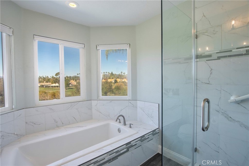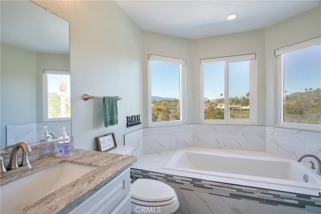Views, Views, Views! Nestled above the 8th fairway, this rare, highly sought-after 2-bedroom plus loft home offers panoramic views of the majestic mountains and valley. Completely turnkey and move-in ready, this home has been meticulously updated with high-end finishes throughout. The open-concept floor plan greets you with a grand double-door entry leading into bright, airy living spaces that are flooded with natural light. The spacious primary suite is conveniently located on the main floor, while the second floor features a charming guest bedroom, a full bathroom, and a versatile loft perfect for an office, reading nook, or additional living space. Upgrades galore! Kitchen & bathrooms completely renovated with custom cabinetry, high-end appliances, elegant countertops, designer fixtures, and stylish tile & backsplashes. In 2021, a new high-efficiency A/C and furnace system was installed. Enjoy the outdoors year-round under a custom Alumawood patio cover, ideal for entertaining or relaxing with stunning views. The owner has spared no expense in upgrading and enhancing every corner of this home from 2020-2025, ensuring it’s as functional as it is beautiful. Located within Murrieta’s exclusive 55+ gated community, residents have access to resort-style amenities including an 18-hole public golf course (with a fee), clubhouse, pool, spa, fitness center, tennis & pickleball courts, and a packed social calendar full of events and activities. Whether you’re seeking a peaceful retreat with spectacular views or a vibrant community with endless social opportunities, this home offers the best of both worlds. Don’t miss your chance to own this rare gem! This beauty was recently appraised for $630,000!