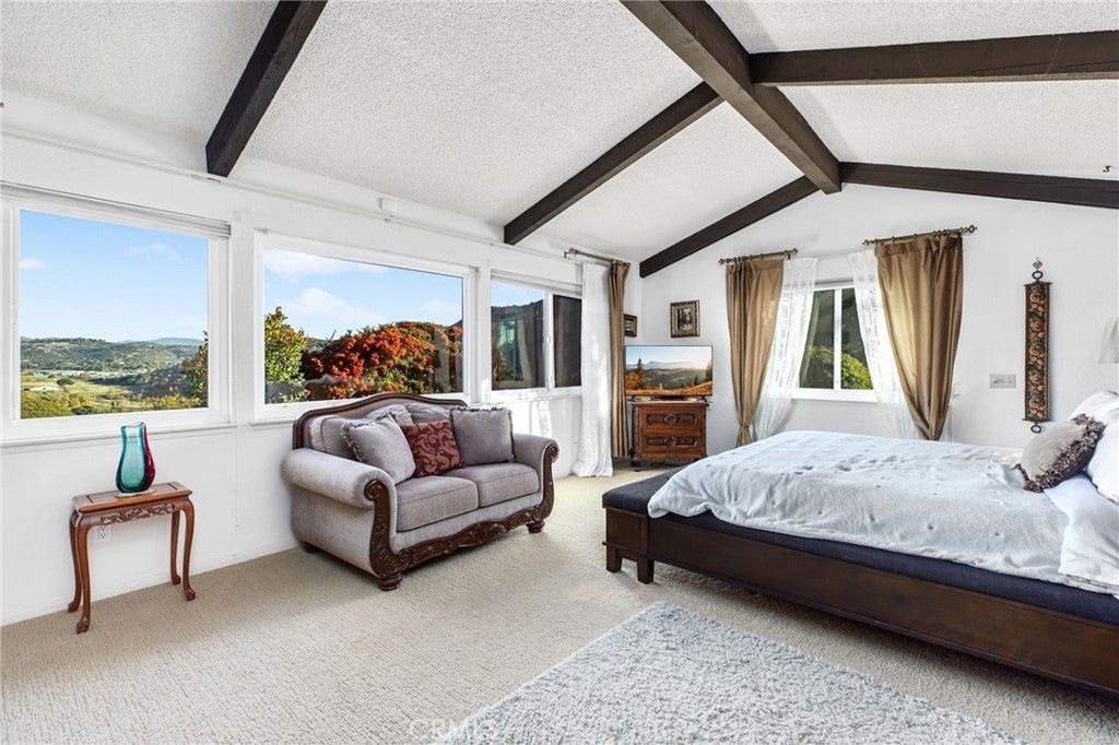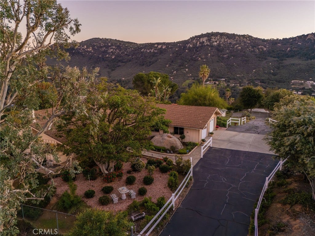 Experience a rare single-level private retreat set on 2.62 acres, offering a peaceful, rural lifestyle with breathtaking panoramic mountain and greenbelt views, lush surroundings, and exceptional privacy—just minutes from Bates Nut Farm and The Native Oaks Golf Club. Fully fenced with two private gated entrances, this serene property delivers space, tranquility, and future income potential. The updated kitchen (2022) features quartz countertops, refaced wood cabinetry, and flows seamlessly into the dining area with direct access to a covered outdoor patio—ideal for entertaining or enjoying peaceful mornings surrounded by mountain views and mature landscaping. One of the home’s three wood-burning fireplaces enhances the indoor-outdoor lifestyle. Upon entry, the expansive living room sits to the left, showcasing high vaulted ceilings, abundant natural light, and large windows framing the stunning views. A second wood-burning fireplace adds warmth and charm, with easy access to the kitchen, dining area, and hallway. Down the hall are three bedrooms, all equipped with ceiling fans. The primary suite is a true retreat with vaulted ceilings, its own wood-burning fireplace, en-suite bathroom, incredible views, and private access to the patio and backyard. The two additional bedrooms each offer direct access to the side yard. The two-car garage provides ample storage and attic access. Outdoors, enjoy orange groves, lush landscaping, and serene surroundings across the expansive acreage. Below the fenced property is an undeveloped ADU with its own private gate and unpaved driveway, offering excellent income or multi-generational potential. Water is available. Additional features include city water, septic recently pumped in 2024, partially replaced windows, replaced exterior beams, and an updated ADT security system. A rare opportunity to own a private, view-filled retreat with room to grow—this is one you don’t want to miss!