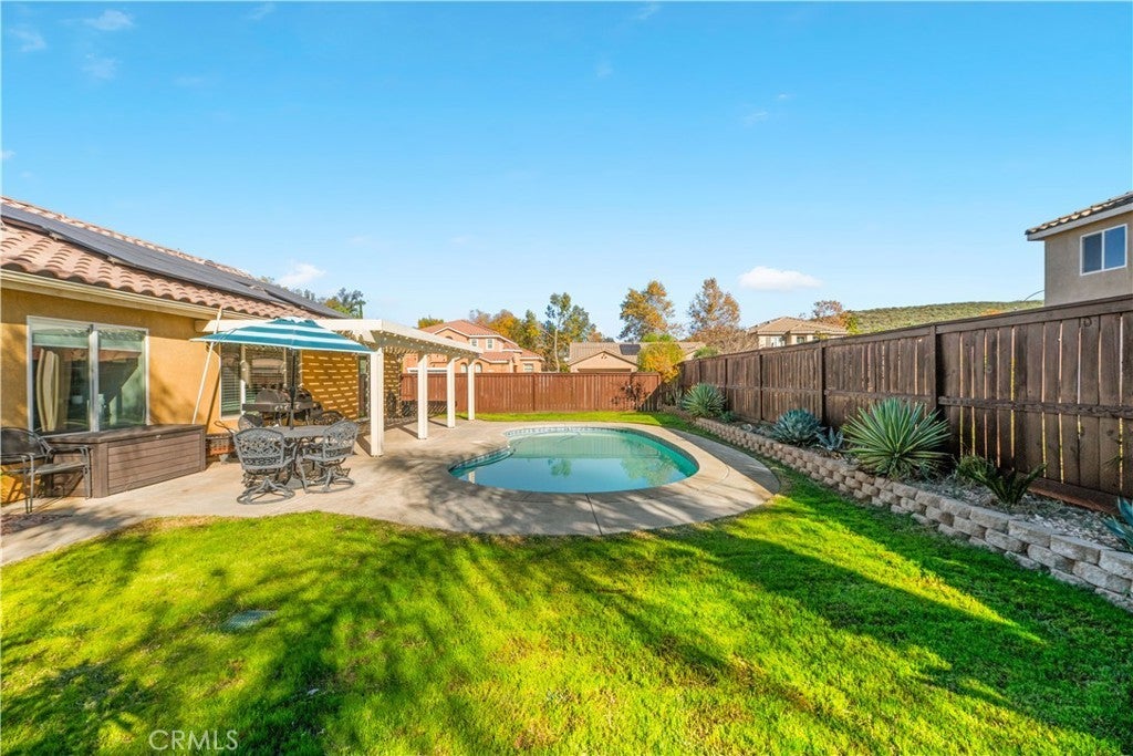 CORNER LOT | SINGLE-STORY | POOL HOME | SOLAR | LOW HOA. Welcome to 32816 Autumn Wood Cir, a beautifully maintained and updated single-story corner-lot home offering comfort, style, and functionality in Lake Elsinore. This move-in ready residence features 1,770 sqft, 3 spacious bedrooms, and 2 fully renovated bathrooms. Inside, the home has been thoughtfully upgraded with tile flooring throughout the main living areas, new carpet in the bedrooms, fresh interior paint, new ceiling fans, and updated lighting, creating a bright and welcoming atmosphere. The kitchen features a center island and flows seamlessly into the spacious family room, perfect for everyday living and entertaining. The primary suite offers ample closet space and a private updated bathroom. Both bathrooms have been fully renovated, and the home is finished with new cellular blinds featuring blackout and light-filtering options for added comfort and privacy. Step outside to your backyard oasis with a pool, ideal for relaxing or hosting gatherings. The beautifully landscaped front yard enhances curb appeal, while solar panels help keep energy costs low. Additional highlights include central air conditioning, an attached two-car garage, and the added privacy and space of a desirable corner lot. This home truly offers an ideal Southern California lifestyle—don’t miss your opportunity to make it yours.