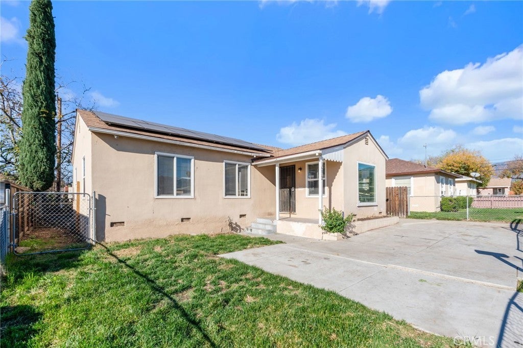Discover this well-kept and thoughtfully updated 3-bedroom, 1-bath home offering comfort, space, and endless potential. Step inside to a spacious living room and dining room featuring beautiful wood flooring, creating a warm and inviting atmosphere. Just around the corner, the updated kitchen boasts tile flooring and a functional layout ideal for everyday living. The property offers a generous floor plan with room to grow both inside and out. Situated on a large lot, the possibilities are endless—create your dream garden, expand the living space, or design the perfect outdoor area for entertaining and relaxation. This home also comes equipped with solar panels, providing energy efficiency and potential savings on utility costs. Conveniently located in a central San Bernardino neighborhood, this home is just minutes from local schools, parks, shopping centers, and restaurants. Enjoy easy access to the 210 and 215 freeways, making commuting simple and efficient. Come see the potential this property has to offer and imagine the possibilities of making it your own.
