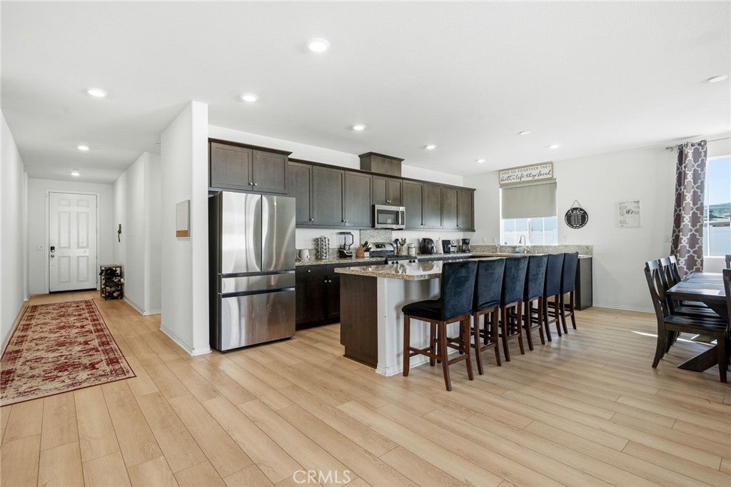 Welcome to this turnkey, single-story home built in 2022, located in the highly desirable Saddle Point community of Hemet. Situated on an oversized cul-de-sac lot with large side yard and plenty of room for a pool. This nearly new home offers the perfect blend of modern upgrades, comfort, and convenience. The thoughtfully designed 3-bedroom, 2-bathroom open living space is ideal for both everyday living and entertaining. The spacious family room flows seamlessly into the kitchen, which features an oversized center island that comfortably seats six, making it a true gathering space. Additional highlights include upgraded flooring throughout, custom window shades, and a bright, welcoming interior. Step outside to enjoy the large stamped concrete patio, upgraded landscaping, and a fully fenced backyard and side yard—perfect for outdoor entertaining, relaxation, and future customization. The home also includes central air conditioning and heating, a convenient indoor laundry room with built-in shelving, and an attached three-car garage providing ample parking and storage. The garage also includes a 220v 50amp receptacle for vehicle charger. Residents of Saddle Point enjoy well-maintained streets with curbs, sidewalks, and street lighting, along with access to a community recreation center and pool. Ideally located in Southwest Riverside County, this home is minutes from local parks, shopping, dining, Diamond Valley Lake, Seven Hills amenities, and Village West. Move-in ready and beautifully maintained, this exceptional property is a rare opportunity in Hemet’s market—don’t miss your chance to make it yours!