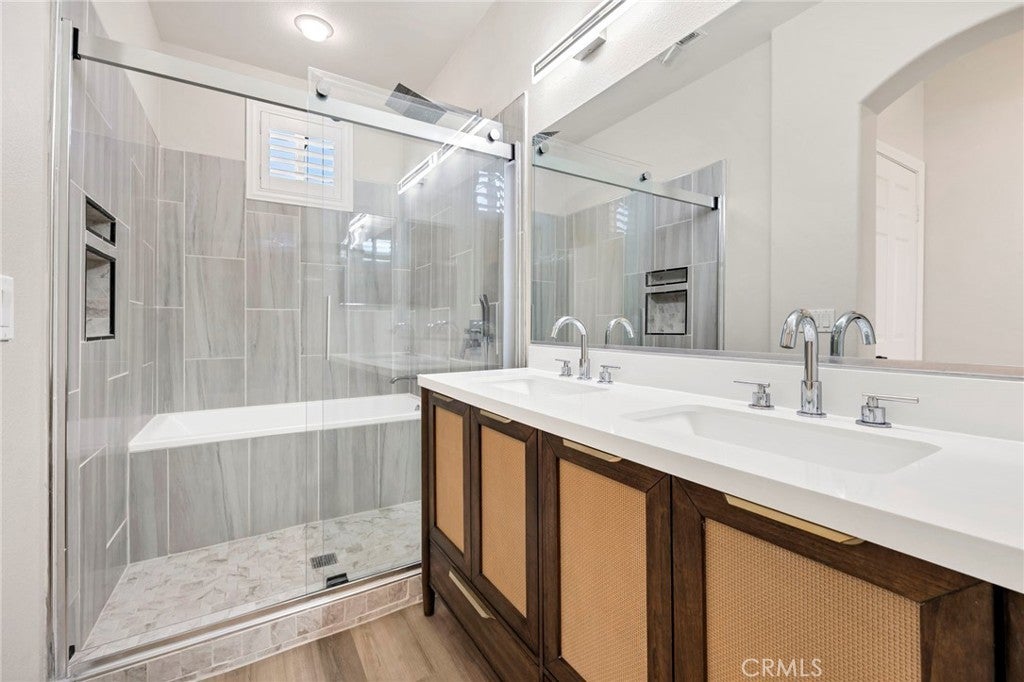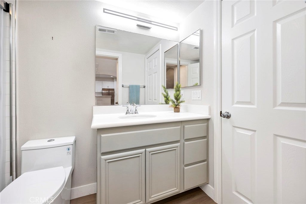 Welcome to this remodeled and magnificent home located in the highly sought-after gated community of Springfield nestled on San Elijo Hills. The property features 2 beds and 2 full baths plus office with decent French glass door which could be converted to the 3rd bedroom. Modern renovation throughout the property enhances this home ambiance and sense of space. Every single detail reflects care and consideration. Laminate floorings on the most, Planation shutters throughout, LED on all the ceiling lights, Smart Thermostat, Trendy-tiles for the fireplace added a sense of depth and layering. The gourmet kitchen highlights: Quartz countertops and backsplash, Solid wood cabinets with stainless organizer inside and underneath lighting, Complete with upgrade appliances: The powerful range Hood, IH oven, Electric stove, "Sharp" quiet and clean dishwasher and Ispring water filtration system and stainless-steel utility sink. Bathrooms include Tall smart sense toilets, Japanese-style tub and walk-in shower, "Kohler" flameless sliding shower doors, Quartz top vanity and good textured faucets and more. The community amenities offer the POOL/SPA and a small park which connects the walking trail with beautiful mountain scenery. The community located only 5 minutes away from Cal State San Marcos ,10 minutes away from the city of Carlsbad. Having a walking distance to great schools, conveniently close to all the living needs!