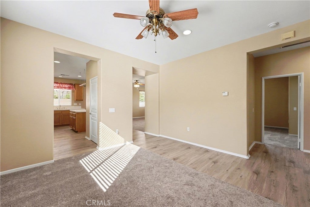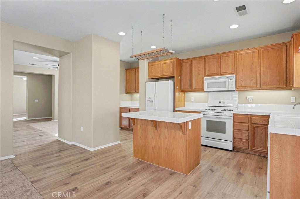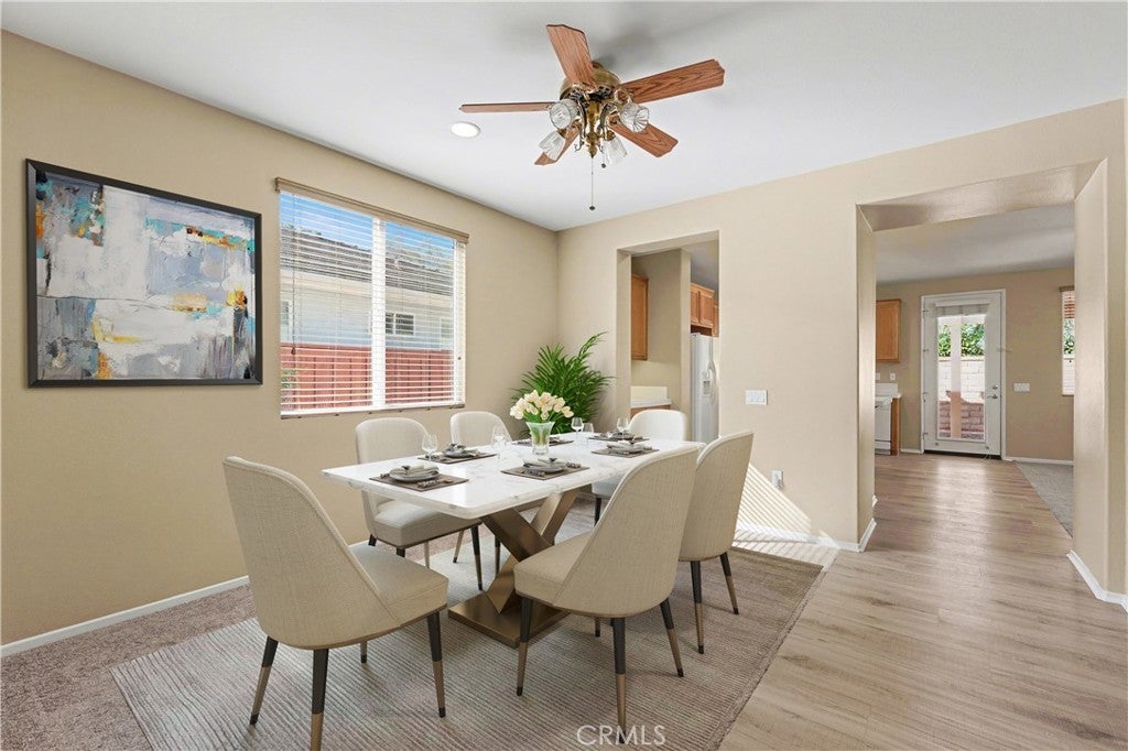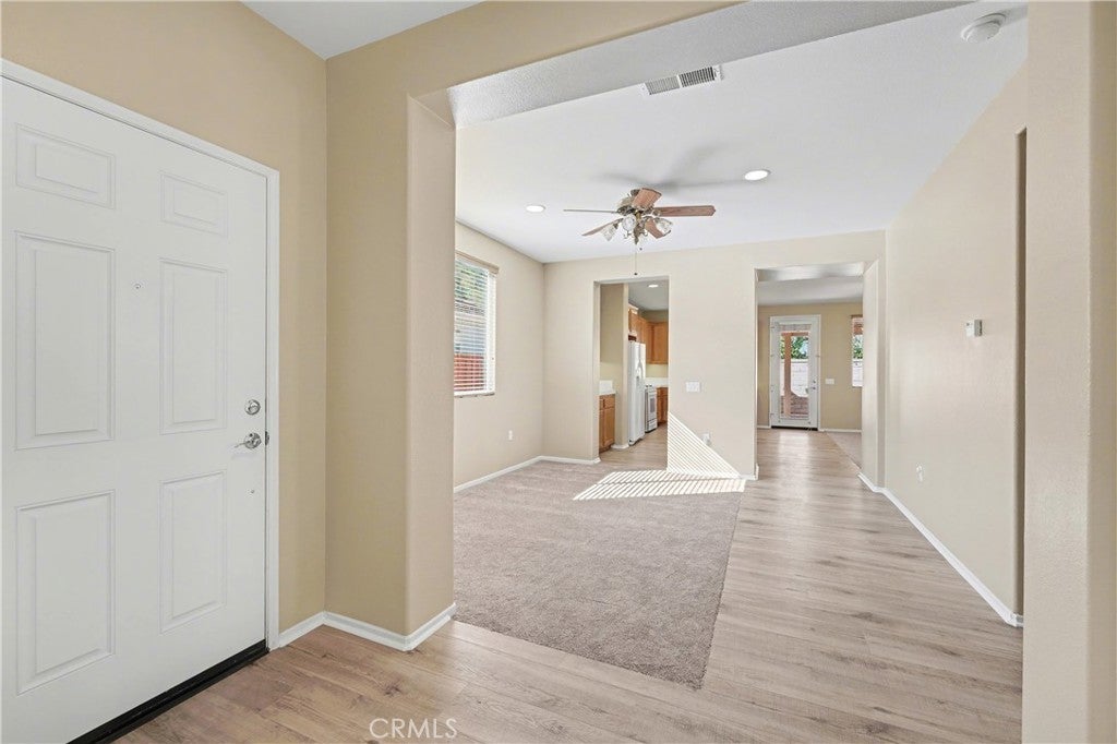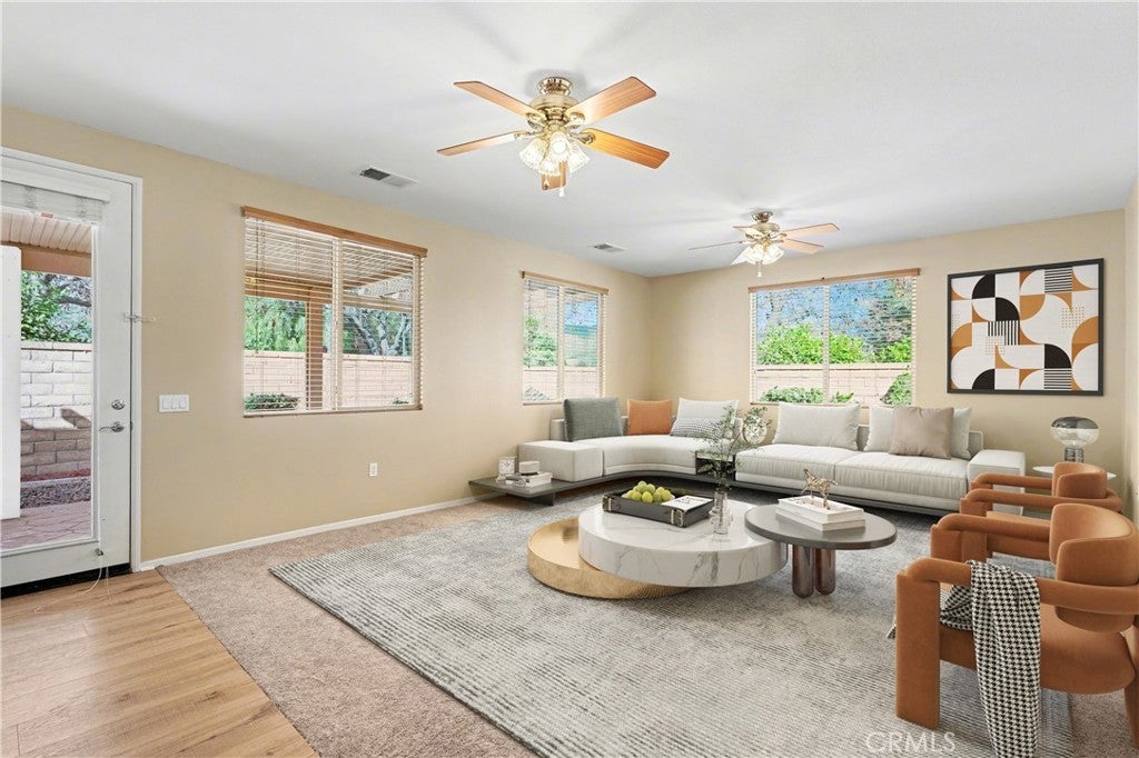 Beautifully updated 55+ home located in the gated Four Seasons Hemet, ideally situated at the end of a private street on a desirable 7,840 sq ft corner lot, offering privacy and no through traffic. This well-maintained residence features approximately 1,809 square feet of thoughtfully designed living space, combining comfort, functionality, and modern upgrades. Recent improvements include brand-new flooring throughout, featuring a blend of luxury vinyl plank and carpet, along with a neutral interior paint palette in excellent condition. Updated lighting enhances the open feel of the home, while vaulted ceilings contribute to a bright, spacious, and inviting atmosphere. The kitchen opens seamlessly to the main living and dining areas, creating an open-concept layout ideal for both everyday living and entertaining. The primary suite offers a peaceful retreat with an en-suite bathroom and generous storage, while the secondary bedroom and bathroom provide flexible space for guests, hobbies, or a home office. Outdoor living is a standout feature, with a custom stamped concrete patio and Alumawood patio cover, providing a low-maintenance space perfect for relaxing, entertaining, or enjoying Southern California evenings. Additional highlights include an indoor laundry area and an attached two-car garage, offering convenience and storage. Residents enjoy resort-style living with access to the Four Seasons clubhouse and amenities, including a restaurant, ballroom, library, recreation center, tennis and pickleball courts, pool and spa, indoor and outdoor lounges, and a full calendar of social activities. Conveniently located near shopping, dining, medical services, and major commuter routes, this move-in-ready home offers an exceptional opportunity to enjoy one of Hemet’s premier active adult communities.