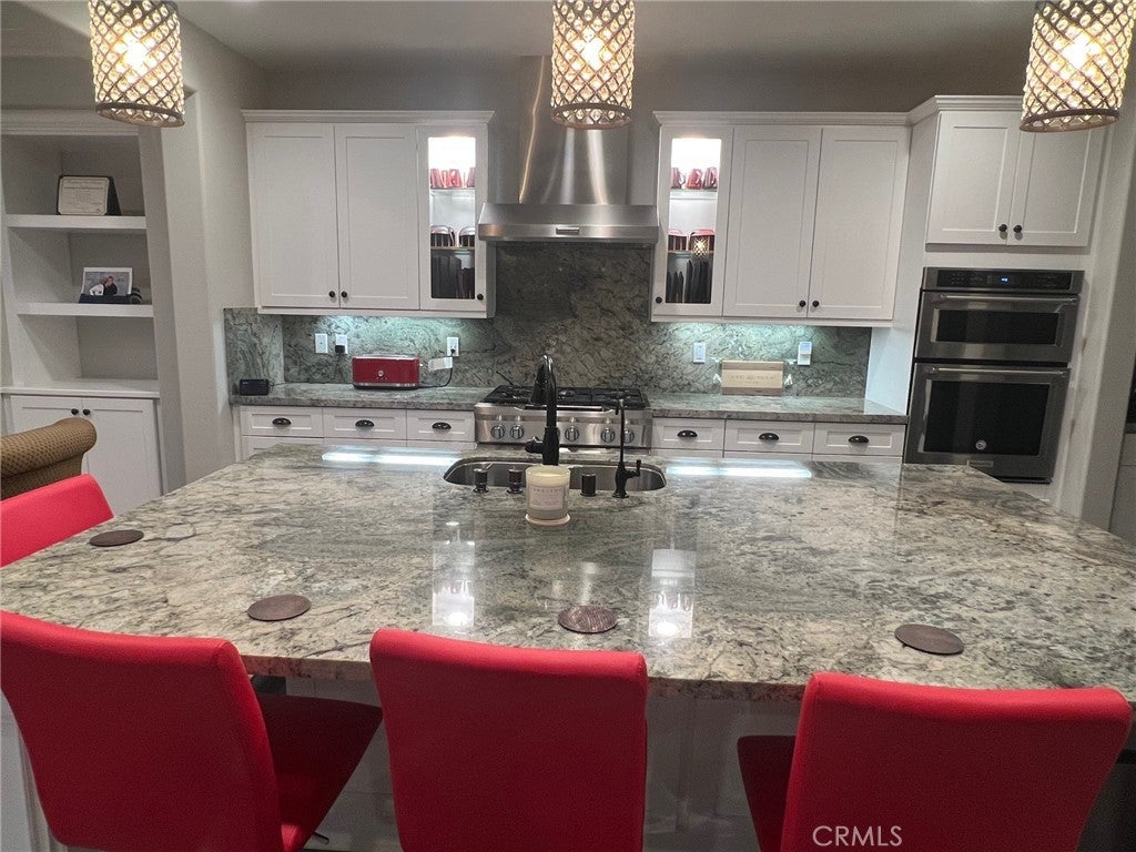 • AppliancesSixBurnerStove, Convection Oven, Double Oven, Dishwasher, Disposal, Gas Oven, Gas Range, Microwave, Range Hood, Tankless Water Heater, Free-Standing Range, Water Softener