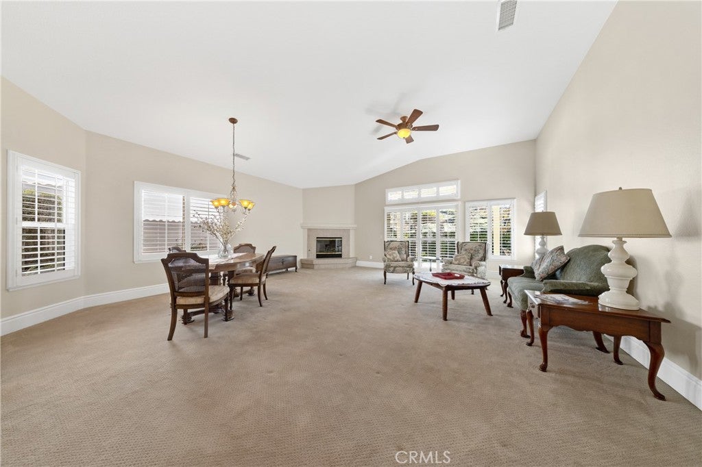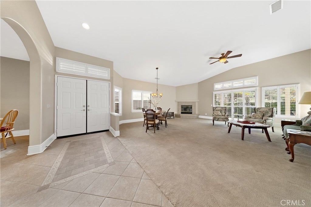 Welcome to resort-style living at The Colony, Murrieta's premier 55+ community. This well maintained 3-bedroom, 2-bathroom home offers no rear neighbors and is move-in ready with fresh interior neutral paint, high ceilings, custom baseboards, a skylight, plantation shutters, and ceiling fans throughout. Designed for entertaining and daily comfort, the heart of the home is an expansive Great Room with a volume ceiling and cozy fireplace, seamlessly flowing into a dining area—perfect for all your gatherings. The spacious, sun-filled kitchen is a cook’s delight, opening to the Great Room and featuring a dining nook, newer appliances with room for a future island. Retreat to your private primary suite, which opens to the Alumawood covered patio and boasts an en-suite bathroom with dual vanity, a sit-down dressing table, a large walk-in closet, walk-in shower, and a relaxing soaking tub. Practical features include a centrally located laundry room with sink, counter space and plenty of storage cabinetry. Enjoy the oversized garage with an alcove for storage, a workshop, or a golf cart. Have peace of mind with recent updates: REPIPED PLUMBING with PEX (2024), updated HVAC (2024), an Ecobee Smart thermostat, wall-oven and dishwasher replaced in 2023/24. Washer/Dryer and Refrigerator convey with the sale and were purchased in 2020/21. THE HOA WATERS AND MAINTAINS THE FRONT YARD. Live the vibrant, maintenance-light lifestyle in this guard-gated community with 24/7 security. The resort-class amenities are unparalleled: a clubhouse, year-round pool, spas, tennis/pickleball courts, Bocce Ball, salon, gym, library, a 400-seat auditorium with catering facilities for dances, movies, plays, musical productions & club activities. There is a beautiful lounge with fireplace and bar, great for PARTIES FOR ALL OCCASIONS. A privately-owned 18-hole public golf course is within the community. Perfectly located near shopping, medical centers, parks, Temecula Valley's famed wineries and the Pechanga Casino Resort.