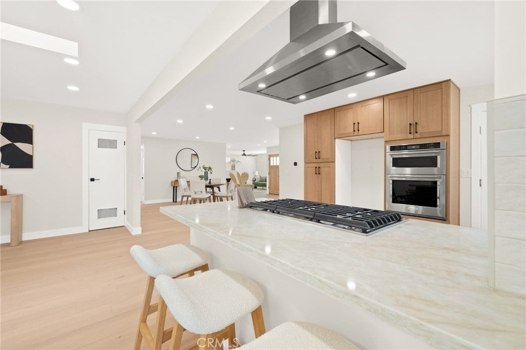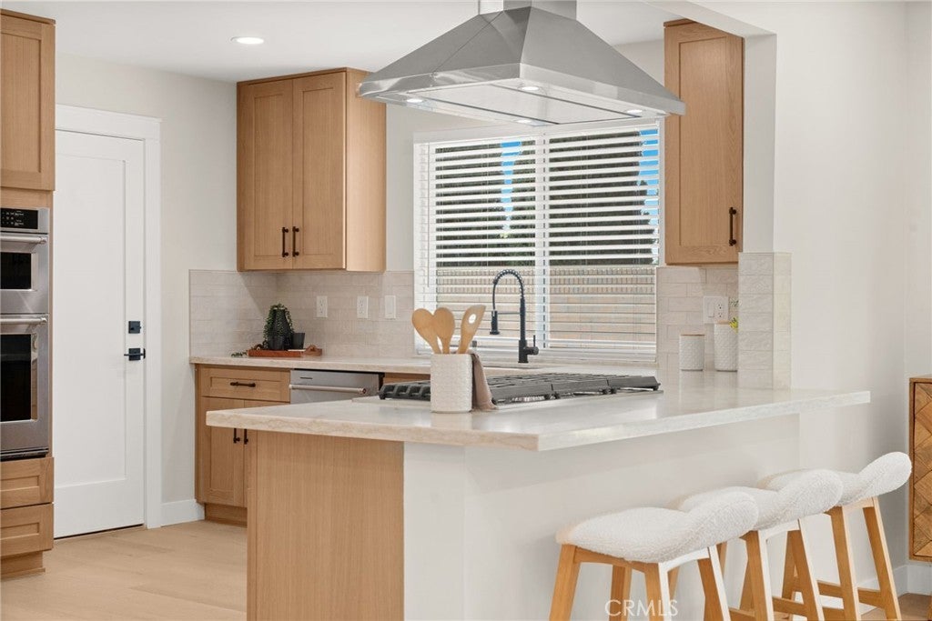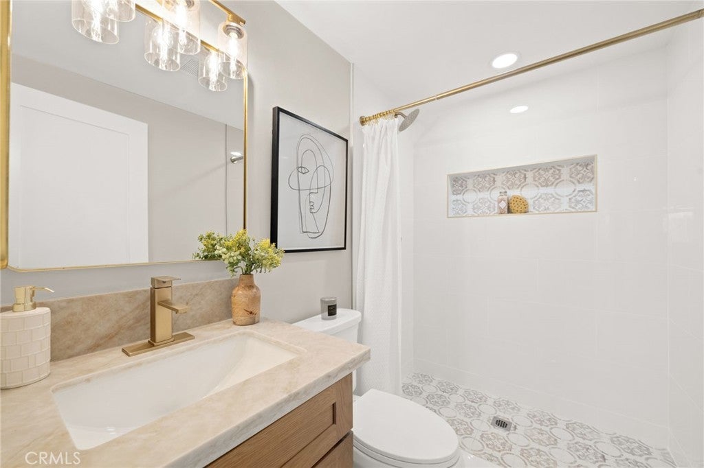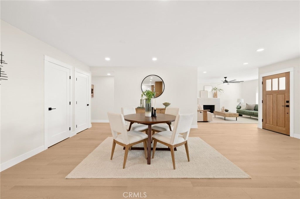 Immaculate fully remodeled single-story 5-bedroom, 3-bath home located in the heart of Orange, adjacent to a beautiful park and a highly rated elementary school within the Orange Unified School District. Ideally situated near popular restaurants, shopping, grocery centers, and just under 3 miles from the historic Old Towne Orange Circle. This turn-key home features extensive upgrades throughout, including a new HVAC system, new roof, updated landscaping, wide-plank flooring, fully remodeled bathrooms, new interior doors, and a completely renovated kitchen with new appliances. The newly landscaped front yard showcases fresh green grass, olive trees, and rose bushes, leading to a concrete walkway accented with pea gravel and a striking new wood entry door. Inside, the home opens to a bright and expansive single-level floor plan filled with natural light, fresh neutral paint, and modern finishes. The spacious entry room offers flexibility for living, dining, or family room use, seamlessly flowing into the open-concept kitchen and great room. The chef’s kitchen features a large peninsula with bar seating, natural oak cabinetry, and elegant Taj Mahal quartz countertops—carried throughout the kitchen and all bathrooms for a cohesive, modern look. The adjoining dining and living area is ideal for entertaining, enhanced by generous recessed lighting and an open, airy feel. The home offers a well-designed layout with five generously sized bedrooms and three full bathrooms, including a private en-suite bath for the primary bedroom. The backyard provides a peaceful retreat with a grassy yard, olive trees, and pea gravel accents. A side yard offers additional storage with a shed and potential space for a lounge area, fire pit, BBQ, or RV parking. A rare opportunity to own a fully renovated, 5 bed single-story home in a prime Orange location—perfect for families, entertaining, and everyday living.