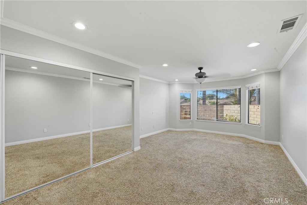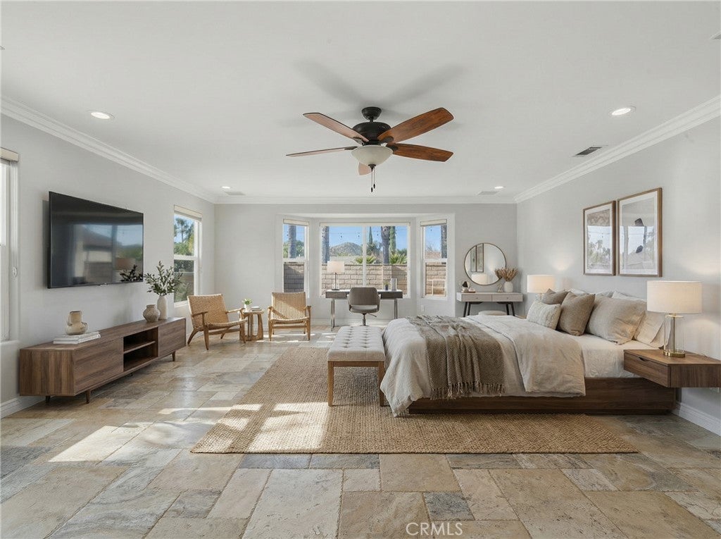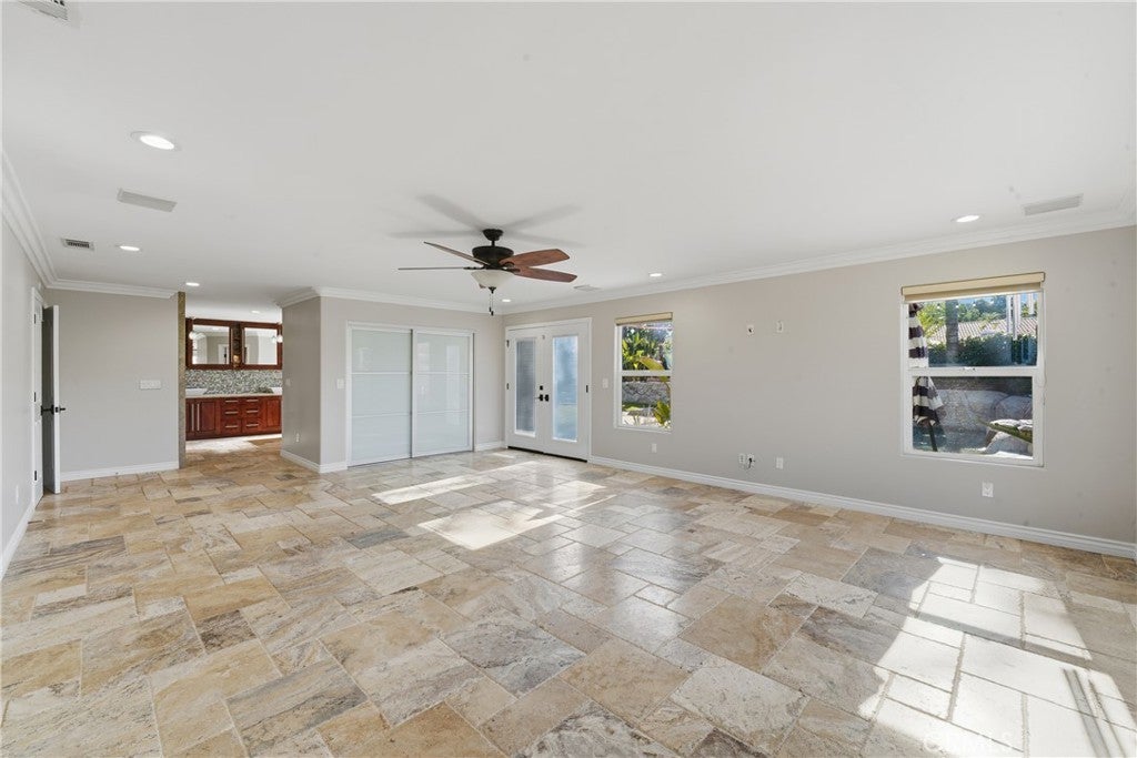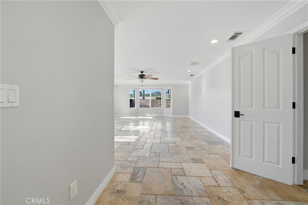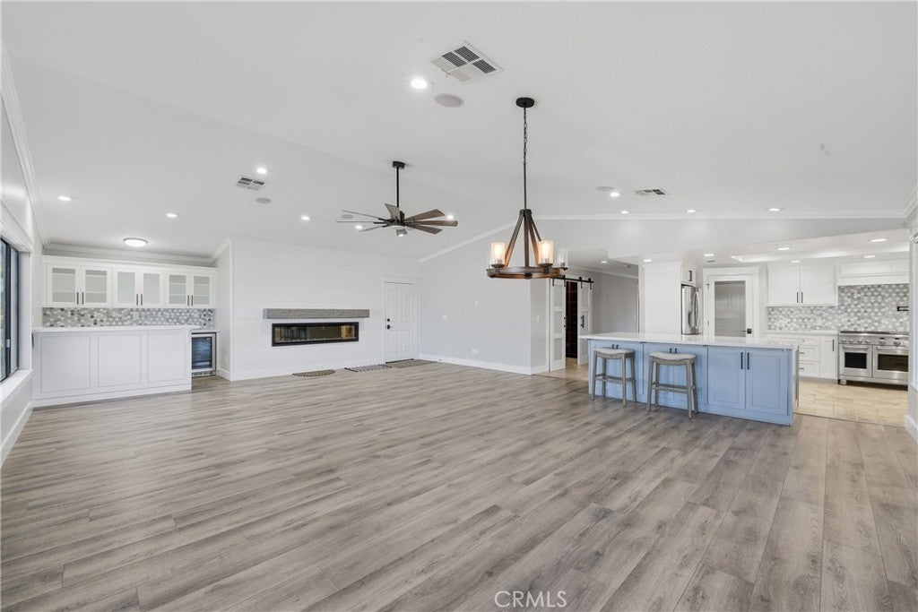 • Interior FeaturesBuilt-in Features, Block Walls, Ceiling Fan(s), Crown Molding, Dry Bar, Open Floorplan, Pantry, Recessed Lighting, All Bedrooms Down, Bedroom on Main Level, Main Level Primary, Primary Suite, Walk-In Closet(s)