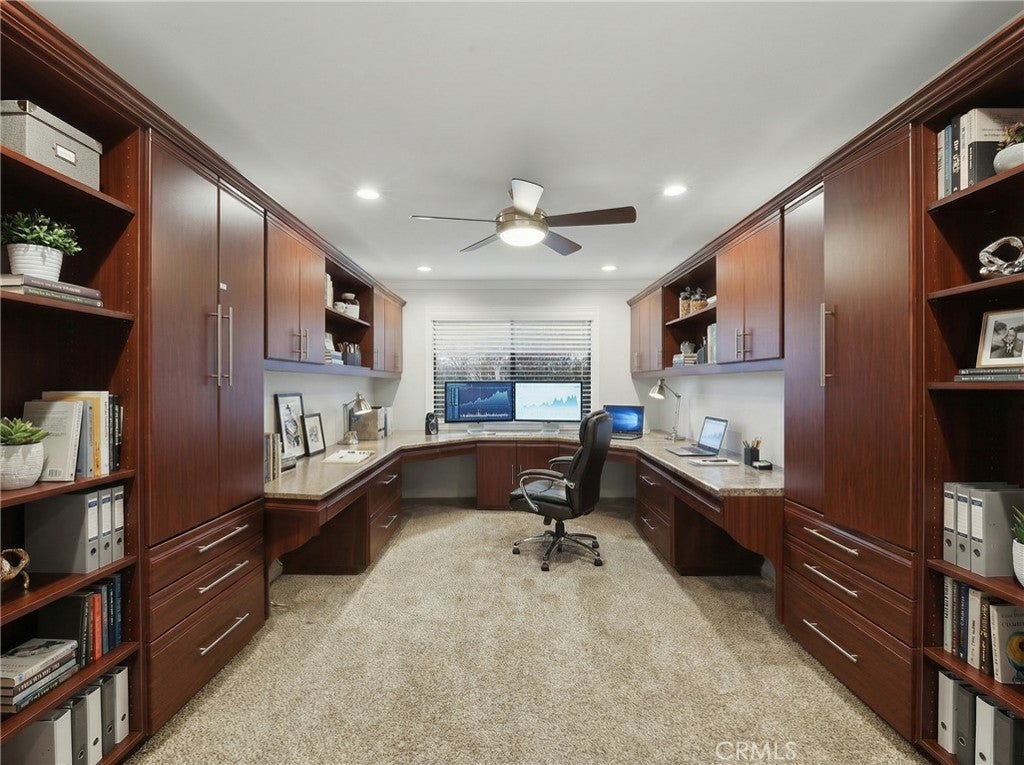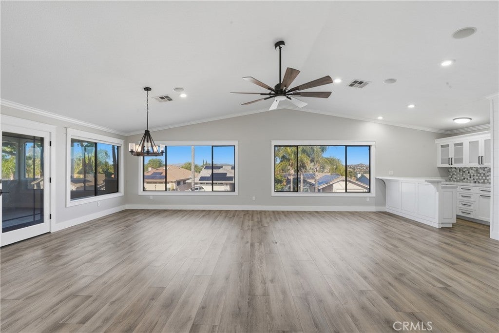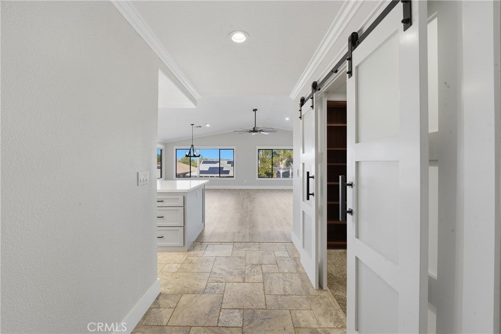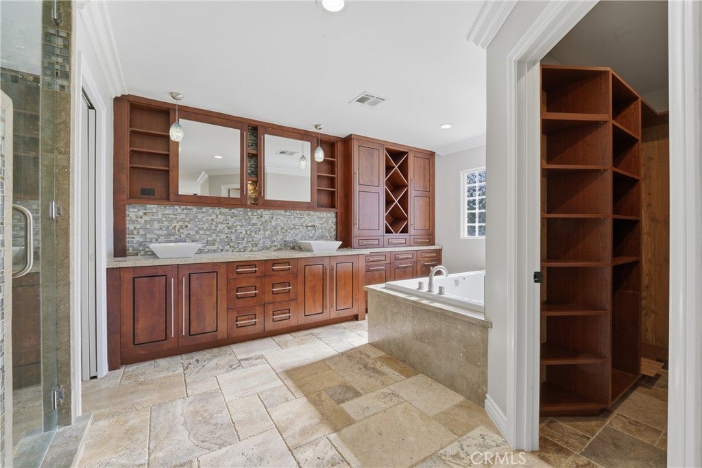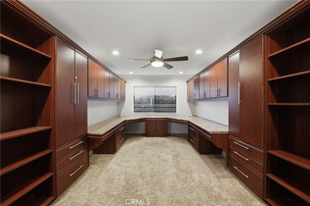 • Interior FeaturesBuilt-in Features, Block Walls, Ceiling Fan(s), Crown Molding, Dry Bar, Open Floorplan, Pantry, Recessed Lighting, All Bedrooms Down, Bedroom on Main Level, Main Level Primary, Primary Suite, Walk-In Closet(s)