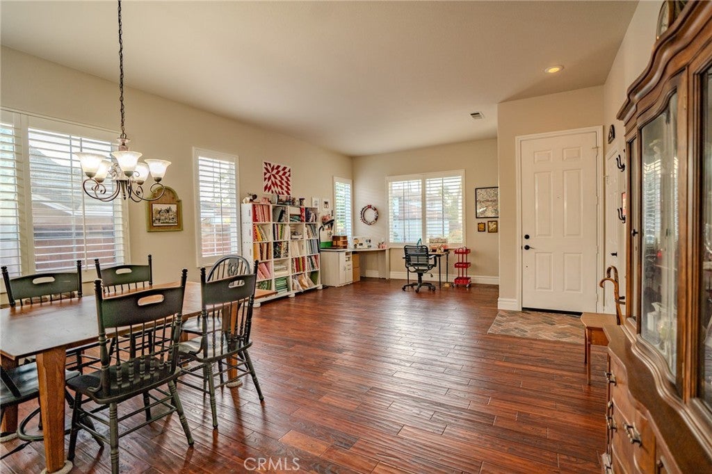 BACK ON MARKET AT NO FAULT TO SELLER. Located on a quiet cul-de-sac in Temecula’s desirable Temeku Hills golf community and only steps away from two of the community's parks, this beautifully maintained single-story home offers 2 bedrooms and 2 bathrooms, with the potential to add a third bedroom thanks to its flexible floor plan. Step inside to find an inviting expanded den and dining area, accentuated by elegant wood flooring, high ceilings, recessed lighting, and stylish window shutters throughout. The master suite features a spacious walk-in closet, dual vanities, a relaxing soaking tub, and a separate walk-in shower for added convenience. Other notable features include a dedicated laundry room with direct access to the garage, a covered patio perfect for outdoor entertaining and shade, drought tolerant landscaping, crown molding, 8-inch base molding, and a whole-house fan that helps keep the home cool and comfortable. Residents of Temeku Hills enjoy a wealth of amenities, including a large pool, soothing spa, fitness center, golf course, tennis and pickleball courts, a welcoming clubhouse, and more—all for a low HOA fee. The neighborhood is conveniently located near top-rated schools, premier shopping and dining options, and the renowned Temecula Wine Country, making this home an exceptional opportunity to embrace the best of Southern California living. This home is well maintained and has been freshly painted both inside and out, ensuring a clean, move-in ready presentation for the new owners.