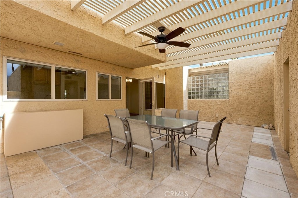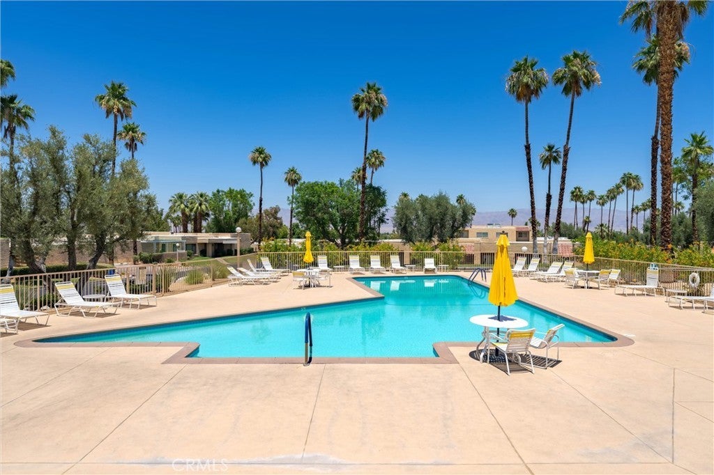 South Palm Desert now has a MOVE-IN-READY well taken care of Townhome Condo with Beautiful Scenic Mountain Views! Situated in a sought-after, quiet, and central section of Corsican Villas, this home offers an ideal location. The Upgraded Interior Features a Kitchen with Newer Stainless-Steel Appliances, Premium Cabinetry and Granite Countertops. Paint throughout is in Great Shape, Popcorn Ceilings are Removed, Bathrooms have Updated Fixtures with Granite Countertops, Newer Vanities and Lighting. Dual Pane Windows in the Primary Suite, 2nd Bedroom, Dining room and Kitchen to save you on heating and cooling costs. Newer Ceiling Fans in All Bedrooms. Newer HVAC Unit and Top Brand Water Heater. Private Patio area (table and chairs included) with a Top Quality Alumawood Pergola. Private Detached 2 Car Garage with upper storage. Plenty of guest parking nearby. Some of the photos have virtual staging to help visualize the home’s potential, comes unfurnished. South Palm Desert's microclimate tends to be more ideal (LESS wind/blowing sand) than other locations in the valley. The Condo is on fee-land meaning you OWN THE LAND, NO lease fees. Corsican Villas sits on land that was rumored to be originally owned by Bing Crosby. The clubhouse (once his pool house), the main piano-shaped pool and putting green were all part of his estate. The complex has 4 pools, 2 are heated year-round, 2 spas, 4 pickle ball & 1 tennis court that can be lit for play at night, large clubhouse with library room, ping pong, darts, billiards, large green spaces, many community fruit trees, and putting green. HOA fee covers your water, trash, cable tv, fast internet (Spectrum), the outside pest control, landscape maintenance, roofs, and stucco..What a bargain! Corsican Villas is in a prime location surrounded by million dollar homes immediately across from The Living Desert, nearby to the El Paseo shopping district (known for being the Rodeo Drive of the Desert), restaurants, entertainment along with many shops and art galleries. Whether you decide to live here full-time or part-time, the community, picturesque mountain views and many green spaces will help you relax in this private desert delight! This townhome is a limited find that won’t last long. Please call to schedule a viewing or we'll see you at the Open House!